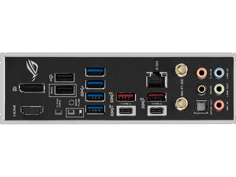 • DIY Friendly Design: PCIe® Slot Q-Release, M.2 Q-Latch, ROG Reusable Cable Organizer, pre-mounted I/O shield, BIOS FlashBack™ button, and Clr CMOS button