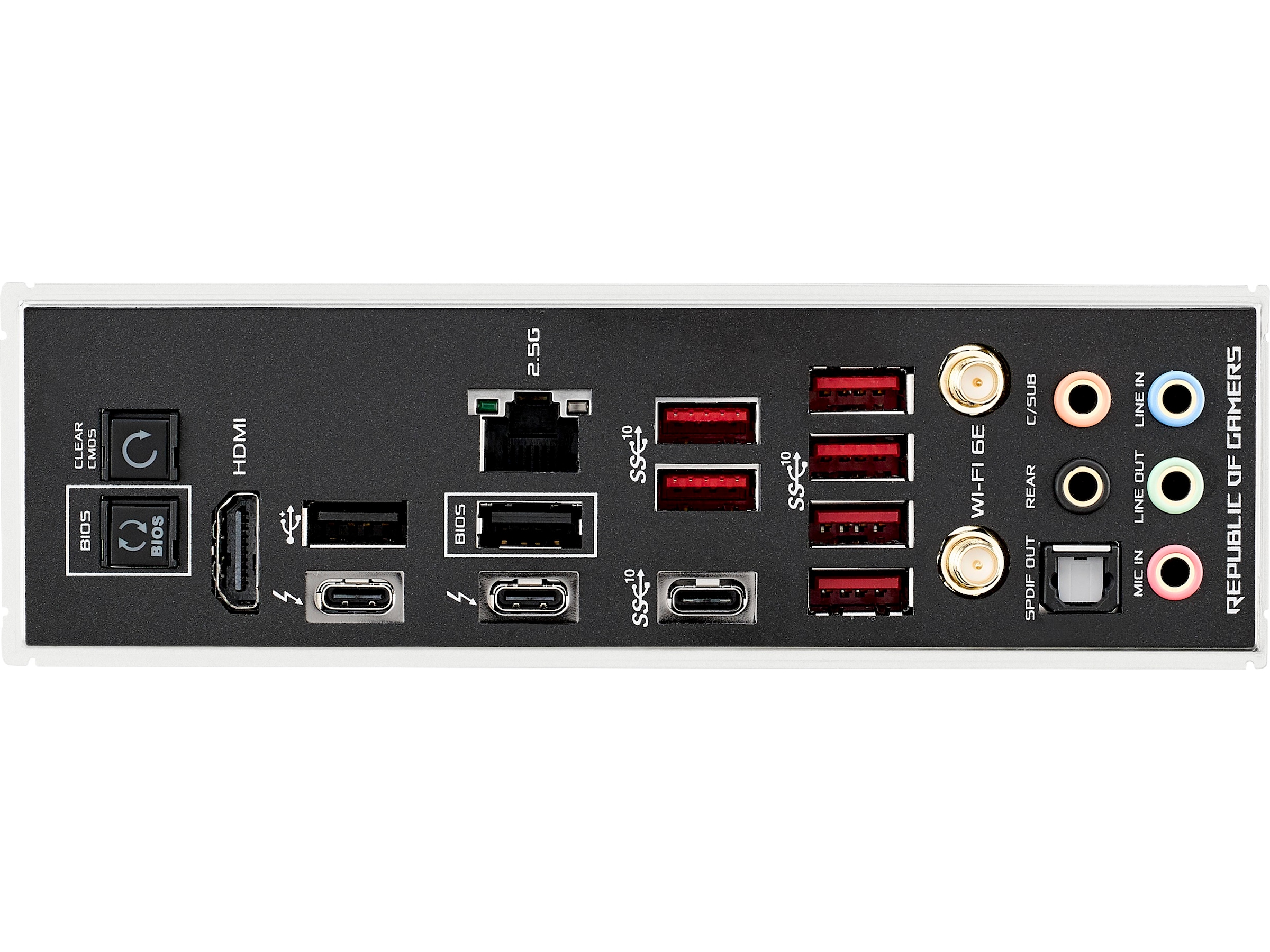 • Fastest Gaming Connectivity: PCIe® 5.0, dual Gen 4 M.2 onboard, ROG Hyper M.2 card with Gen 5 M.2 support, USB 3.2 Gen 2x2 front-panel connector, dual Thunderbolt™ 4 (USB Type-C® ports).