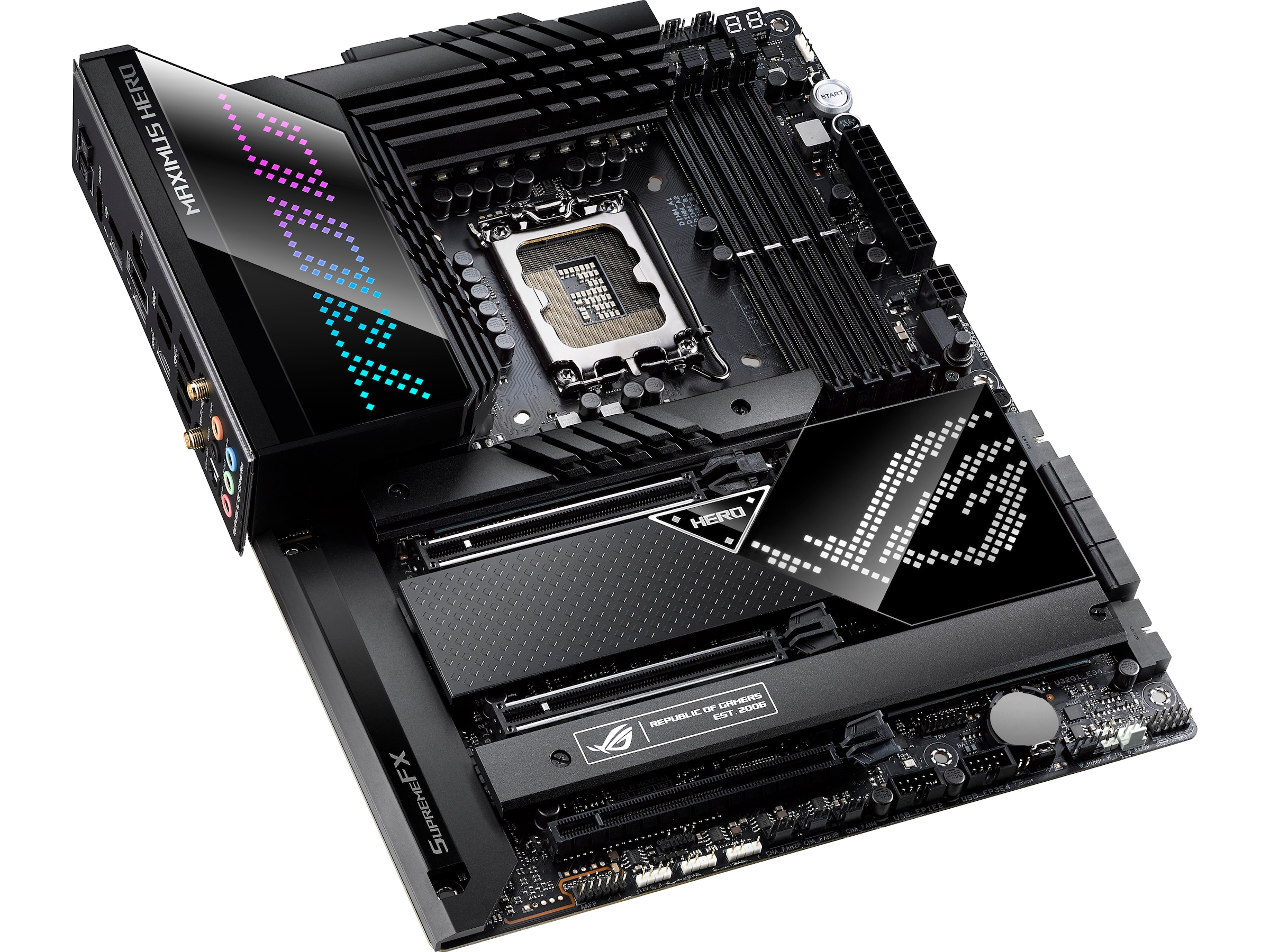 The ROG Maximus Z690 Hero is a quintessential strand of the Republic of Gamers DNA, replete with high-octane components to satisfy users who seek an introduction to the enthusiast-grade Maximus line. Its arsenal of cooling, power delivery and connectivity stands ready to handle whatever the latest 12th Gen Intel® Core™ processors throw at it. And with its new animated Polymo lighting display on the I/O cover that dazzles with vibrant RGB logos and patterns, the ROG Maximus Z690 Hero has the looks to match its leverage.