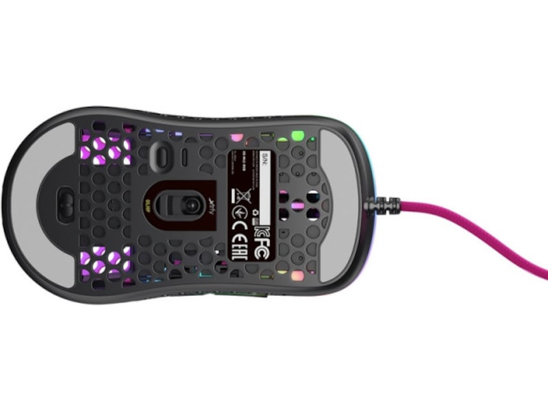 M42 har 100% PTFE skøjter med afrundede kanter for en mere jævn glidning, mens dens matte UV-belægning i kombination med hulstrukturen giver et mere stabilt greb. Forbedrer luftstrømmen under håndfladen, og hullerne hjælper dig også med at holde dig komfortabel.
