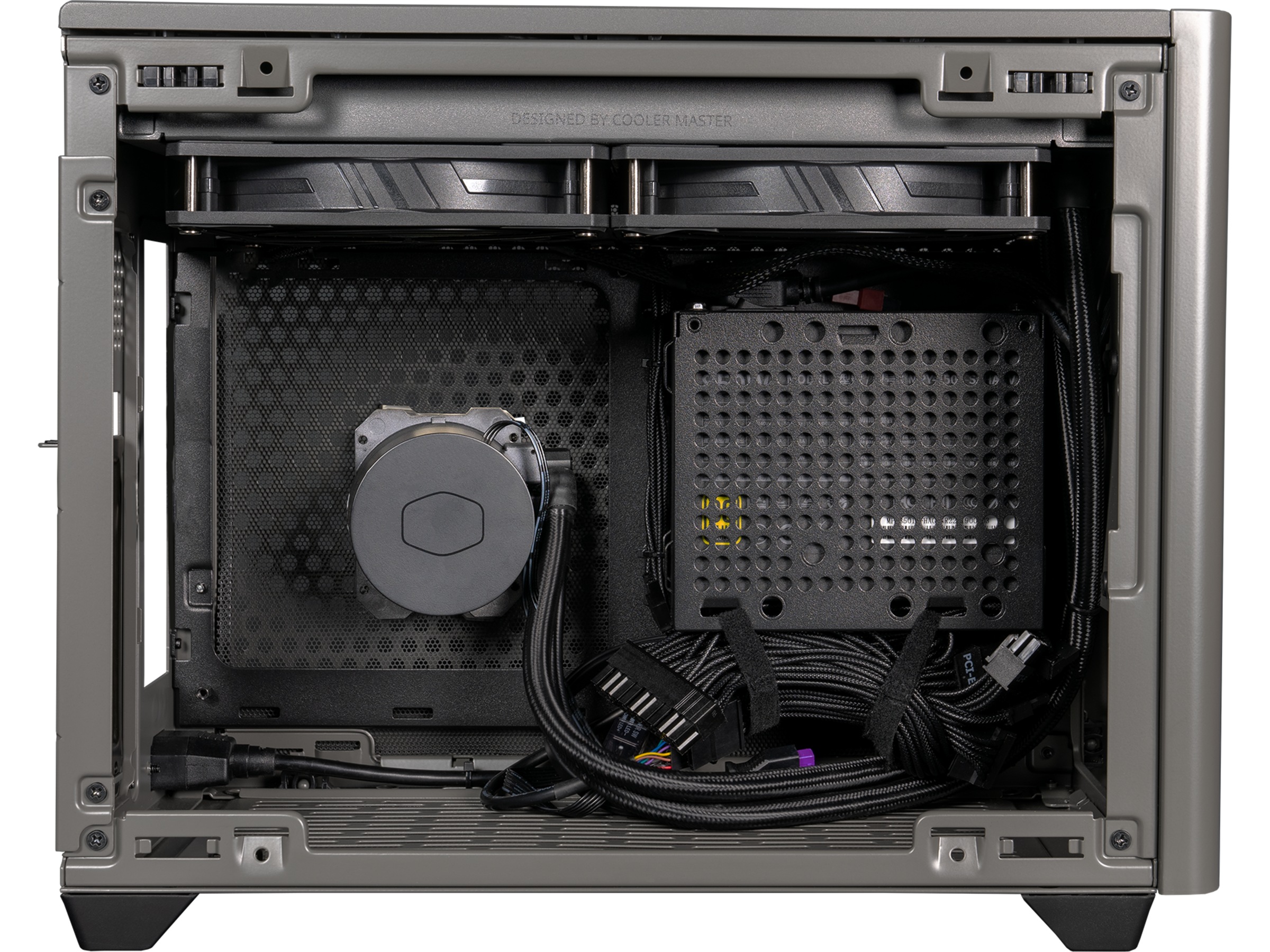 En 280 mm radiator, to forudinstallerede SickleFlow PWM 140 mm blæsere og en meget anerkendt 3. generation Cooler Master pumpe/CPU-blok giver pålidelig køling til CPU'en. AMD-stik op til AM4 og Intel-stik op til LGA1700 er fuldt understøttet.