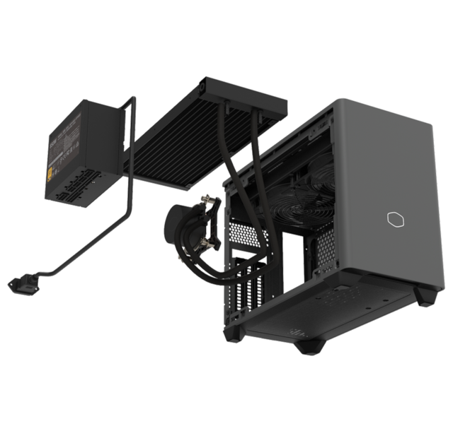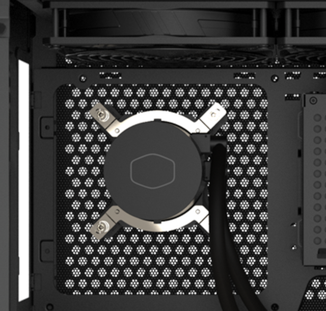 En 280 mm radiator, to forudinstallerede SickleFlow PWM 140 mm blæsere og en meget anerkendt 3. generation Cooler Master pumpe/CPU-blok giver pålidelig køling til CPU'en. AMD-stik op til AM4 og Intel-stik op til LGA1700 er fuldt understøttet.