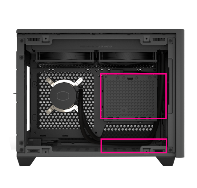 NR200P MAX har Cooler Masters meget roste SickleFlow-ventilatorer, designet med optimerede buede blade for lydløs ydeevne og varmeafledningseffektivitet. Forseglede, sikrede ventilatorlejer forhindrer støvophobning eller lækage af smøreolie, hvilket maksimerer driftsstabilitet og levetid.