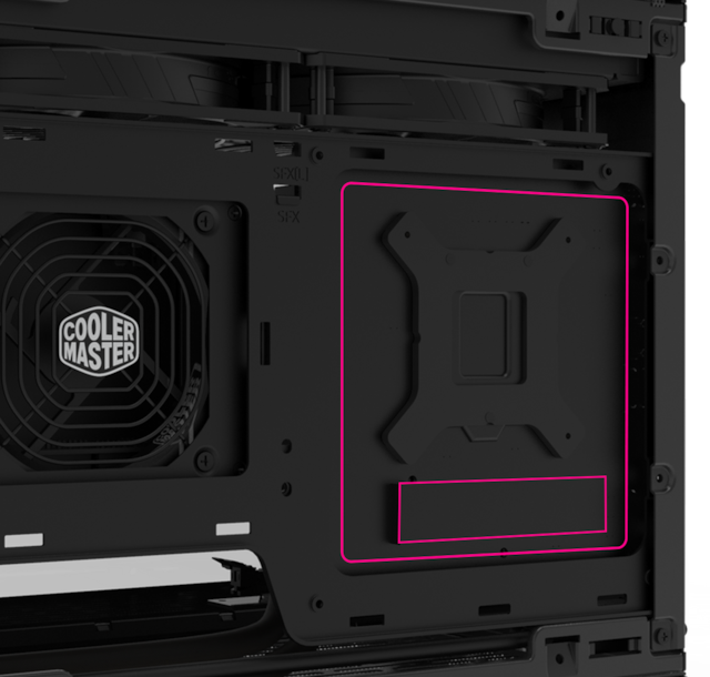 Bundkortbakken er designet til ubegrænset adgang til alle m.2-drev installeret bag bundkortet. Det ventilerede panel sikrer, at m.2-lagerdrev installeret på dette sted kører køligt og pålideligt.