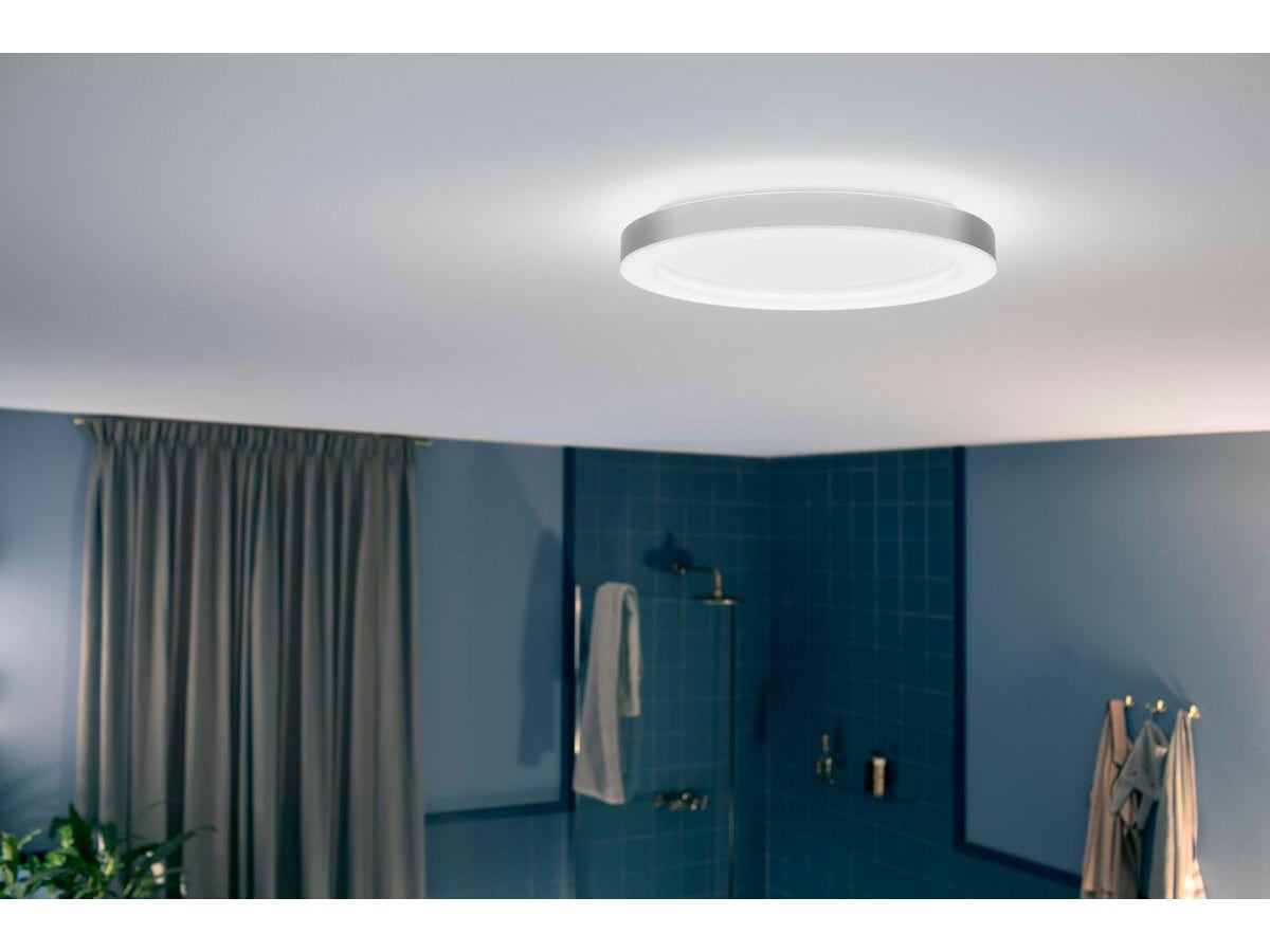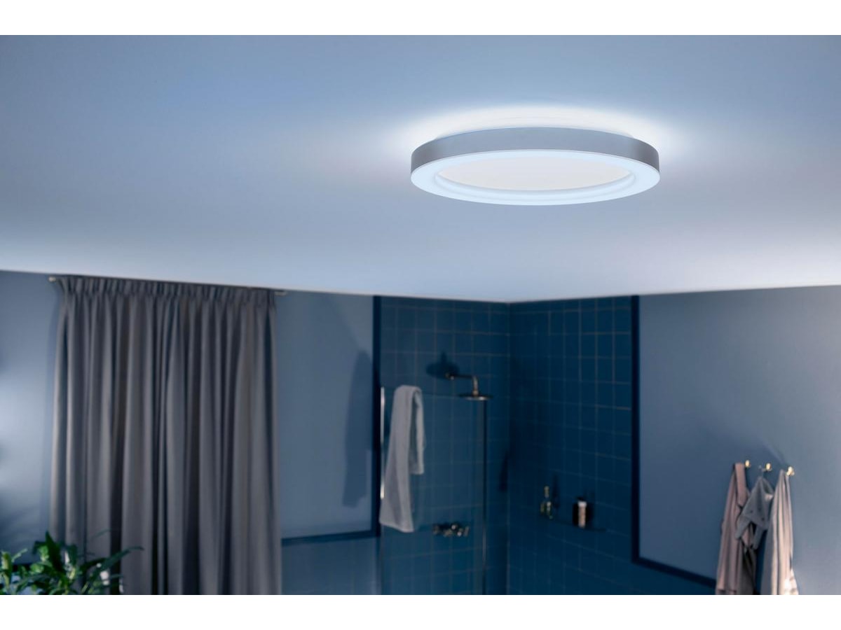 Denne loftslampe er med sit slanke design en stilren og diskret lyskilde til dit badeværelse. White ambiance lampen oplyser nemt både store og små badeværelser og giver mulighed for at skifte mellem kolde og varme toner af hvidt lys. Du kan nemt styre lyset med Hue appen og ethvert Hue tilbehør, herunder den medfølgende Dimmer switch, der både fungerer som vægkontakt og trådløs fjernbetjening.