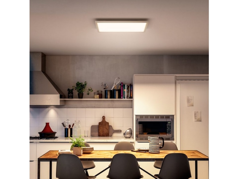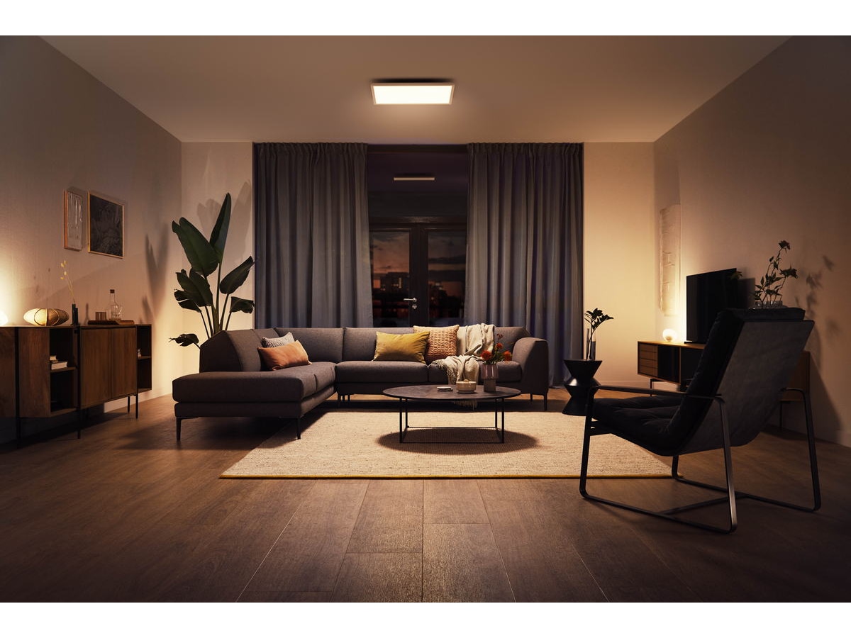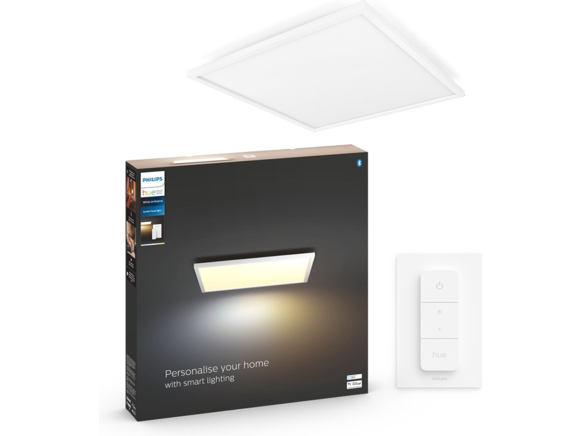Philips Hue Aurelle er en serie af panellamper med White ambiance, der kan skifte mellem kolde og varme toner af hvidt lys.