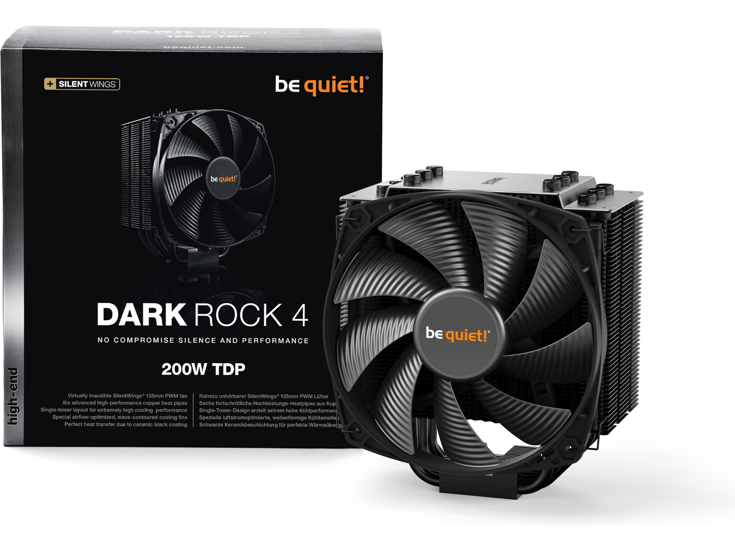 Intet kompromis med stilhed og ydeevne til overclockede systemer og krævende grafikapplikationer! Dark Rock 4 giver en imponerende rating på 200W TDP og opnår lave temperaturer selv i perioder med maksimal CPU-ydeevne.