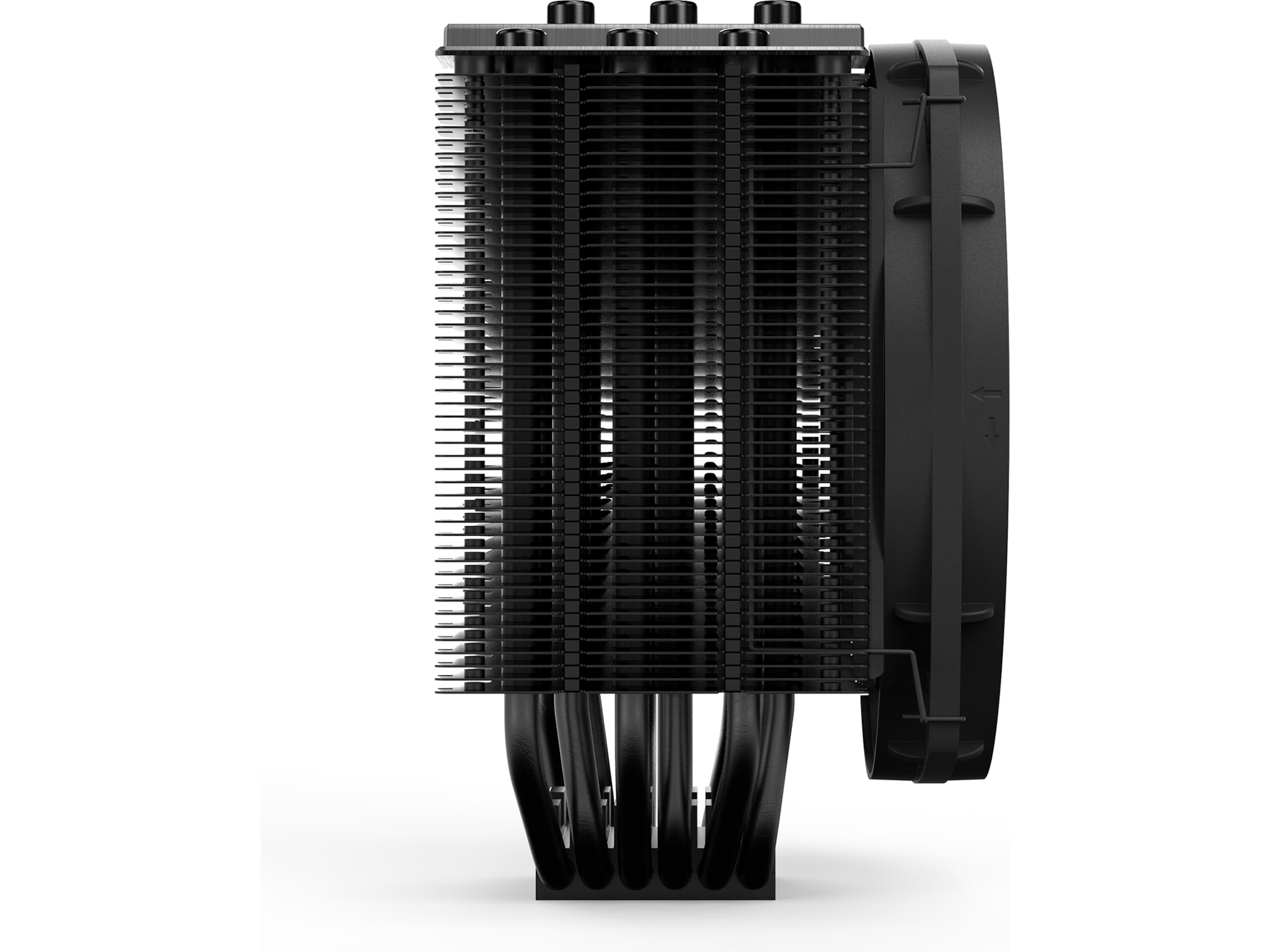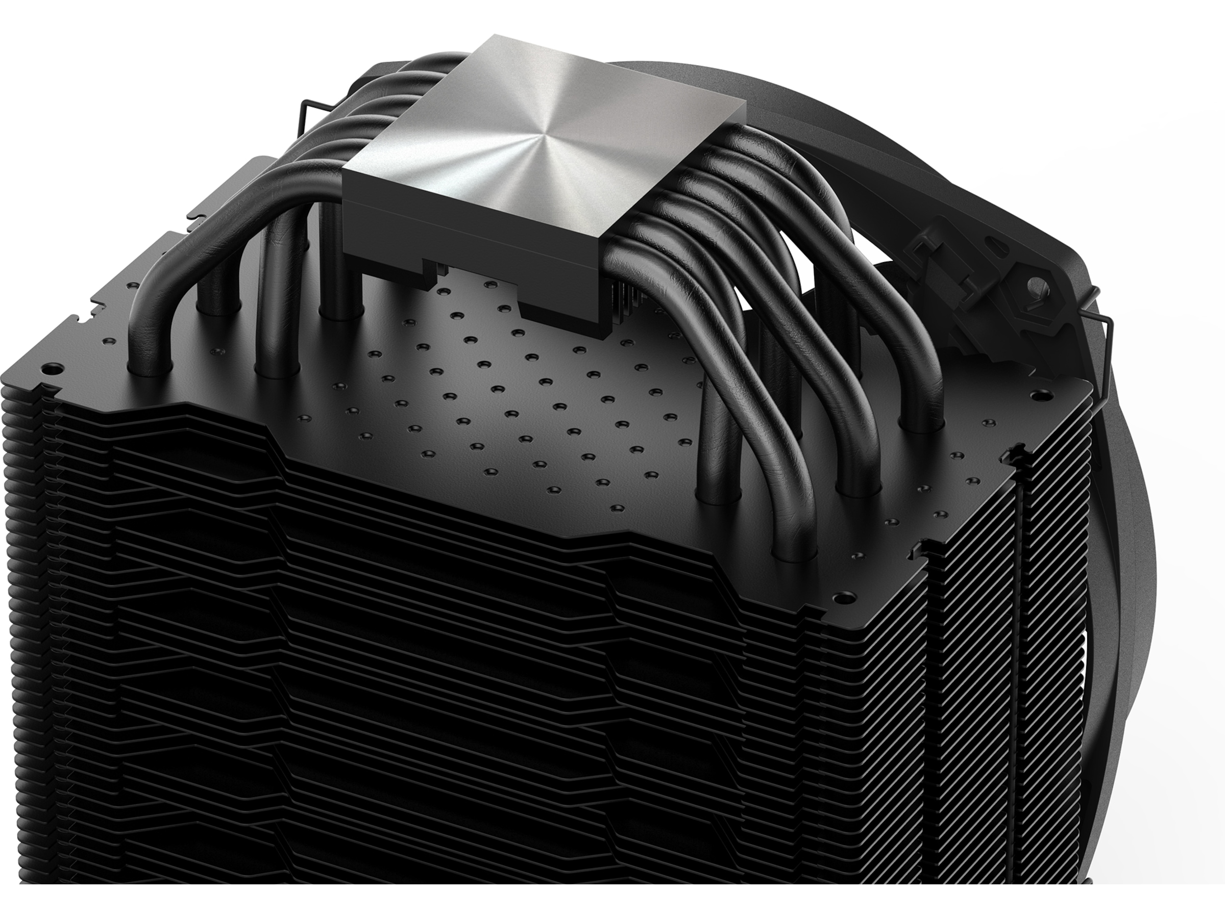 Dark Rock 4 er udstyret med seks avancerede kobbervarmerør på 6mm, hvilket maksimerer varmeledningsevnen. Luftstrømsoptimerede, bølgeformede køleribber med små prikker på deres overflader øger luftcirkulationen. Den specielle sorte belægning med keramiske partikler muliggør en perfekt varmeoverførsel.