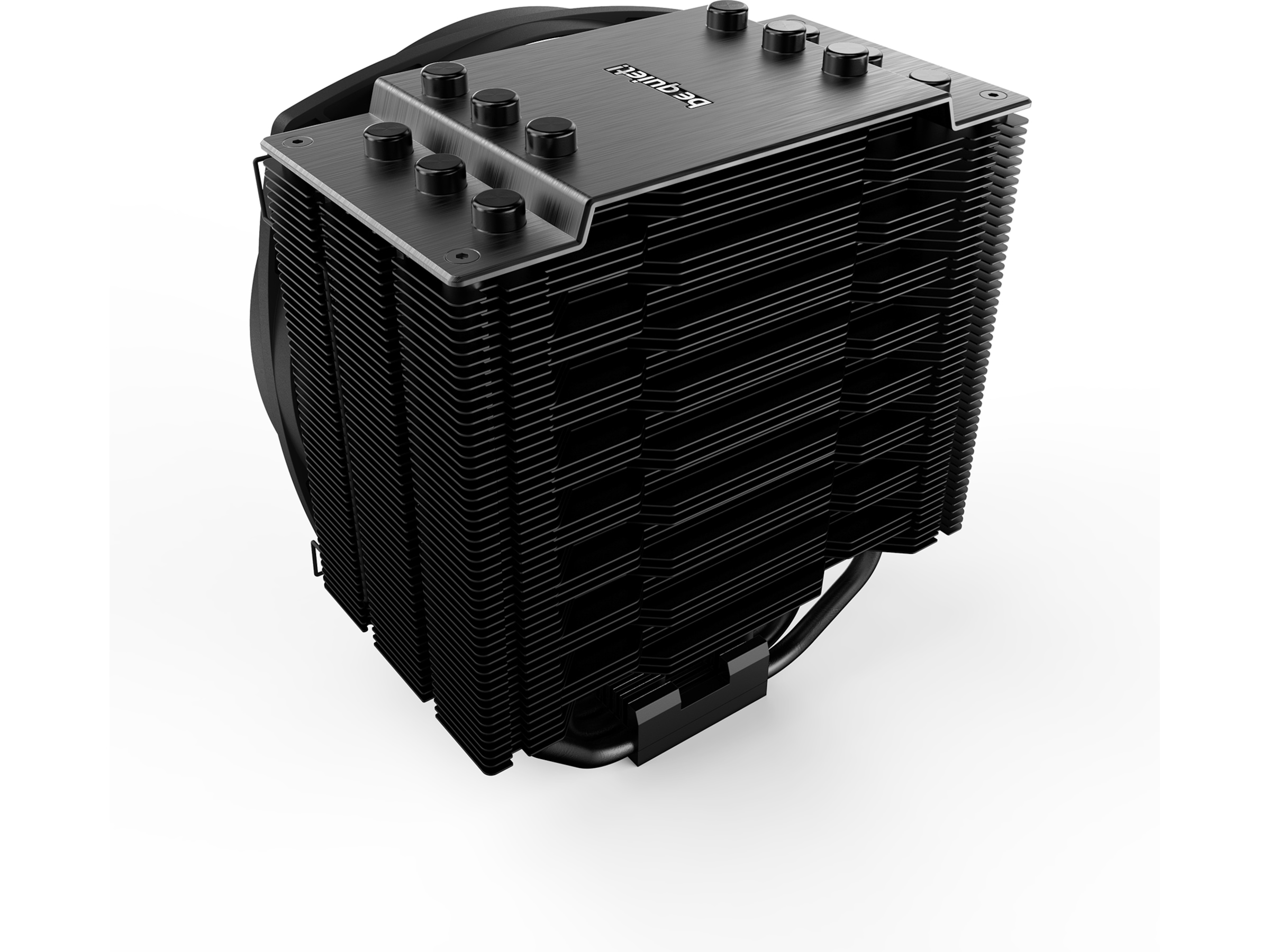 Monteringssættet til Dark Rock 4 køleren er helt sort, hvilket passer perfekt til selve kølerens sorte design. Du kan bekvemt installere køleren på bundkortet ovenfra. Topcoveret i børstet aluminium med sin diamantskårne finish tilføjer et strejf af elegance til denne avancerede køler.