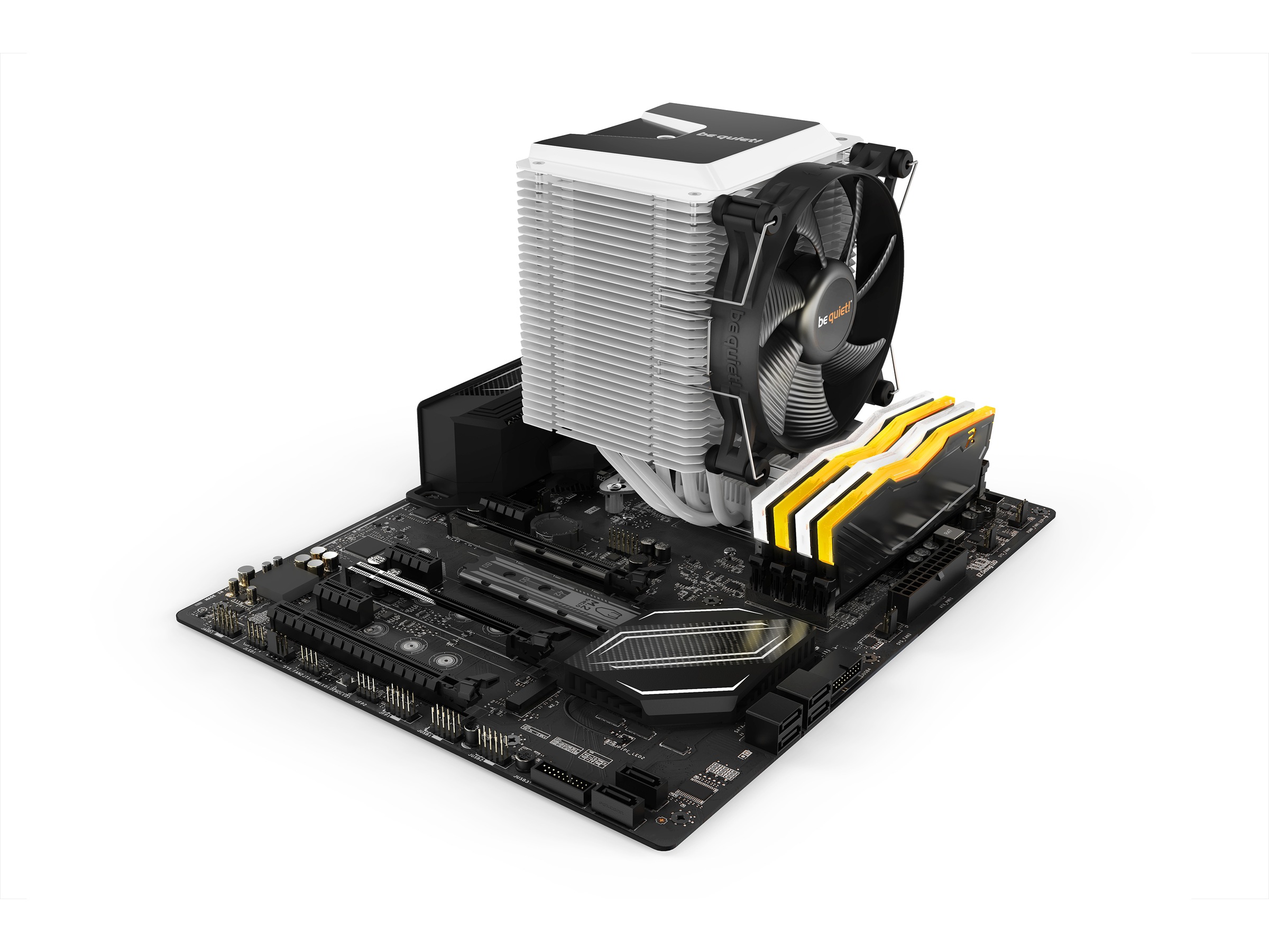 Shadow Rock 3 White kan installeres på alle populære bundkort, og dens asymmetriske konstruktion sparer meget plads. Hukommelsespladserne foran køleren vil ikke blive blokeret.