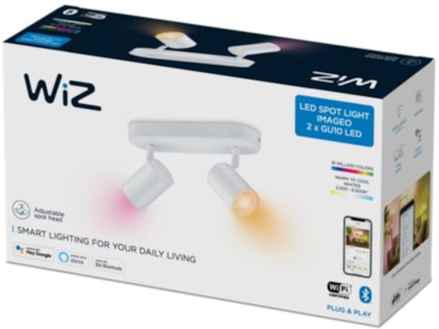 Sæt fokus på de ting, du elsker allermest ved dit hjems interiør ved at lade WiZ Imageo full color spotlamper sørge for den perfekte belysning. Med to justerbare spothoveder får du her en stilren og moderne lampe i hvid, der oplyser og fremhæver de områder og genstande, du holder allermest af.