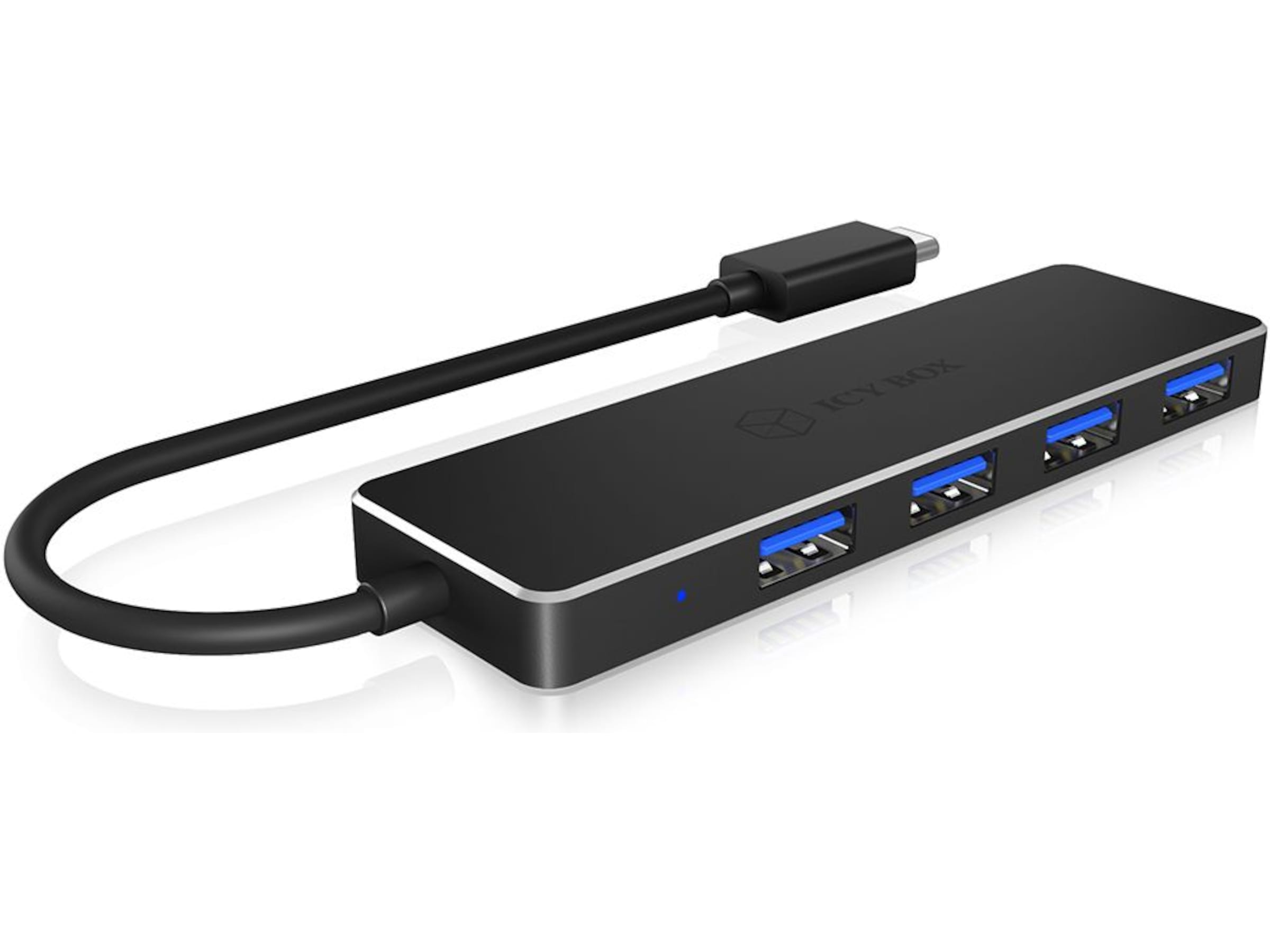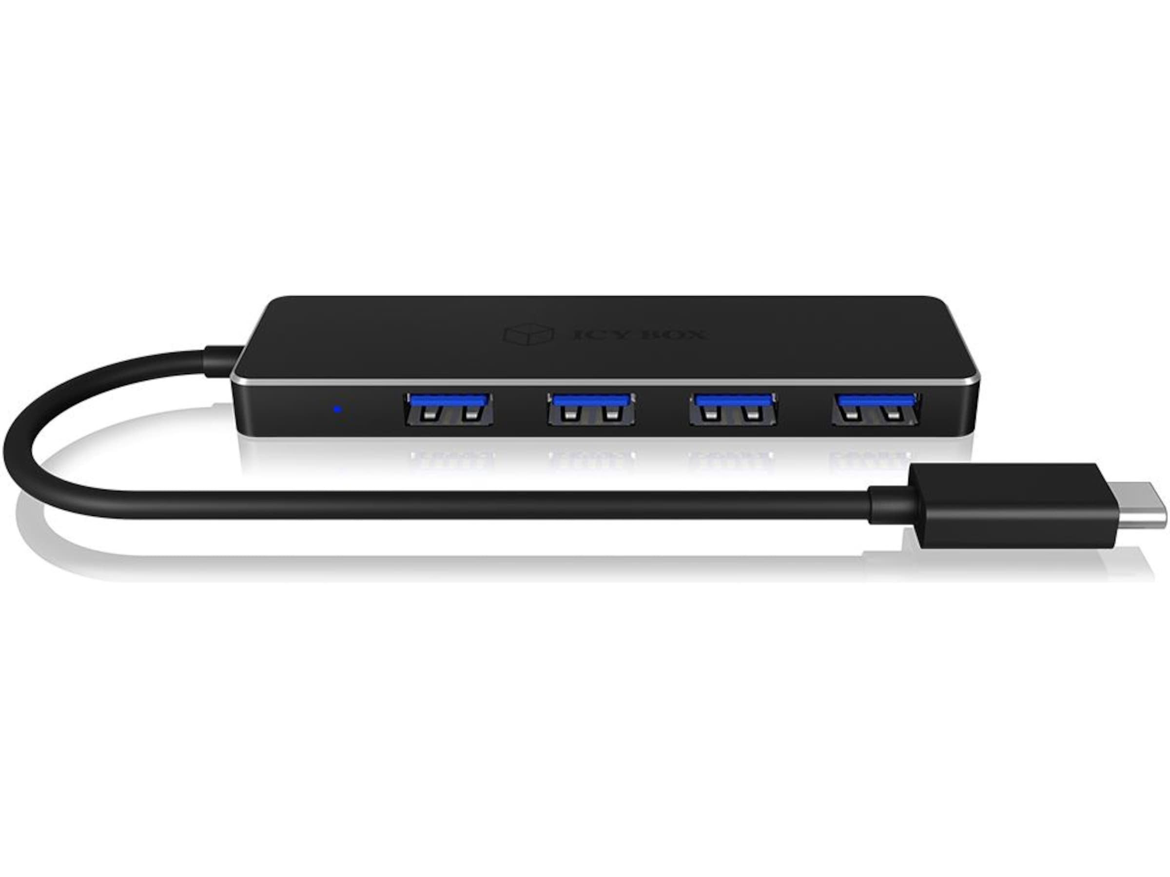 Icy Box USB-C til 4x USB 3.0 Type-A hub, superslank
