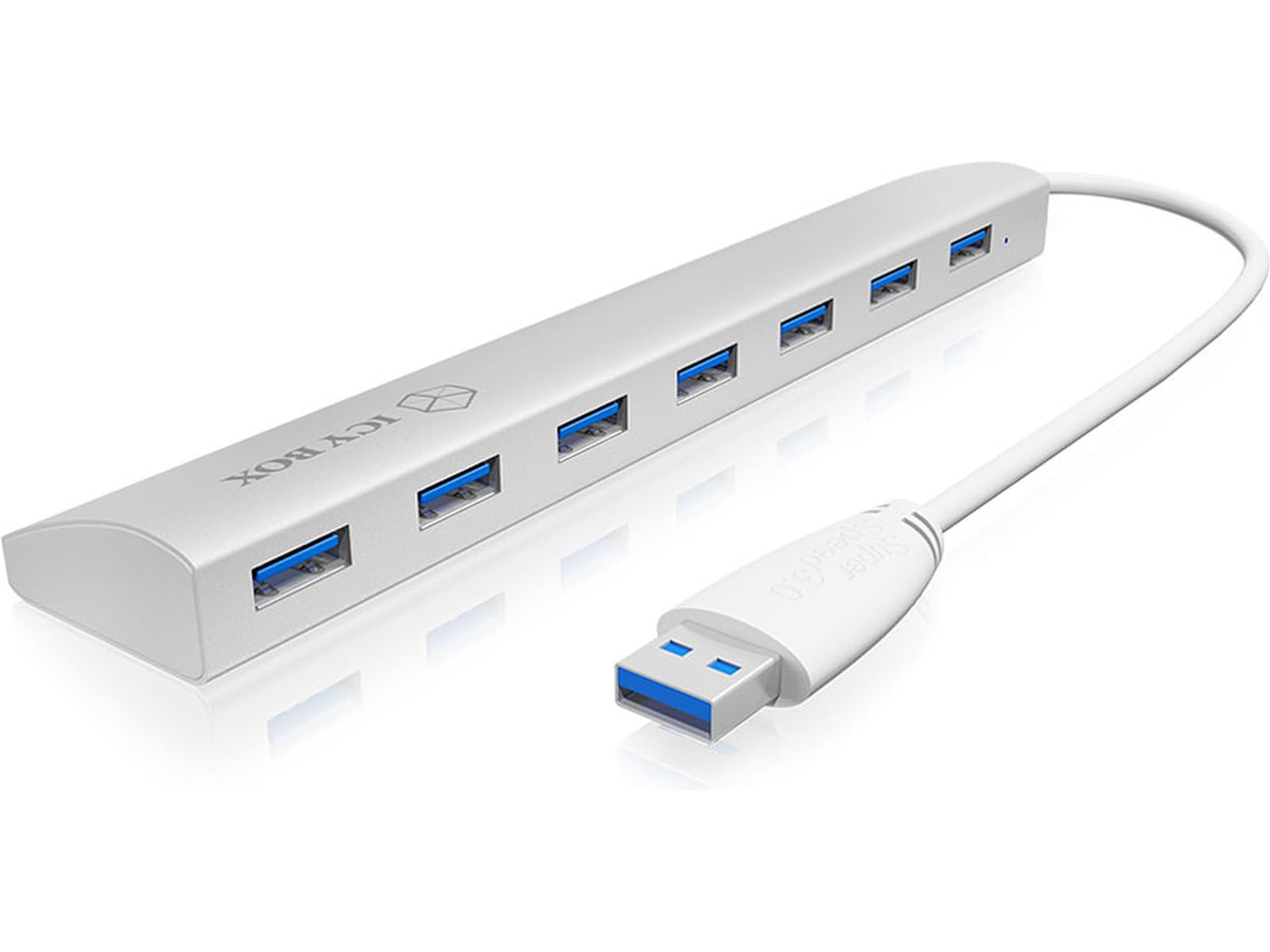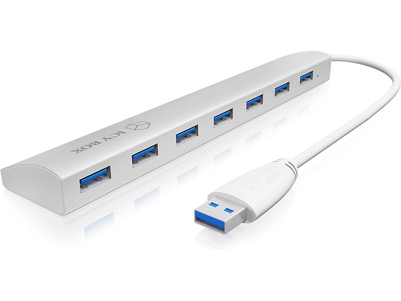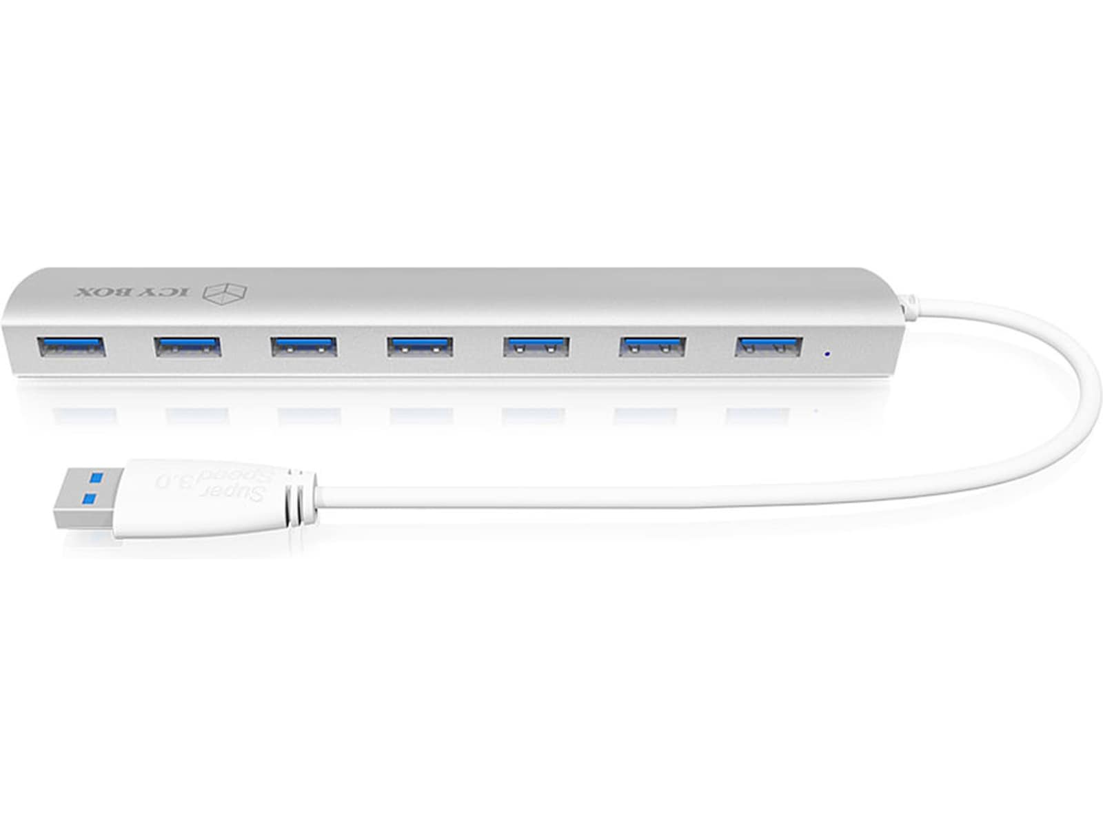 Icy Box 7 porter USB 3.0 Hub, aluminiumsdæksel med strømforsyning
