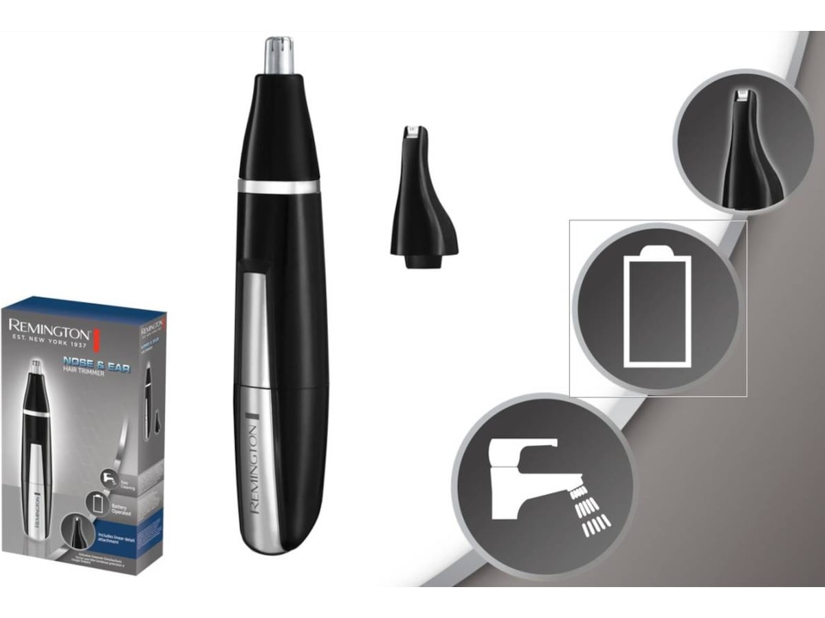 Batteridrevet næse- og ørehårstrimmer med roterende hoved samt et lodret hoved, der gør det nemt at ordne øjenbryn, overskæg og skæg.