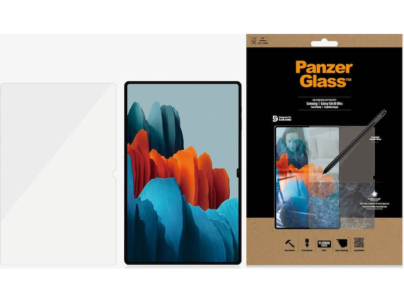 PanzerGlass™ skærmbeskytter til Samsung Galaxy Tab S8 Ultra Case-venlig. Det giver dig den højeste standard inden for skærmbeskyttere, samtidig med at du opretholder 100% berøringsfølsomhed. For at afspejle fornemmelsen og følelsen af det originale display er PanzerGlass™ belagt med et oleofobisk lag, som både er antibakterielt og anti-fingeraftryk.