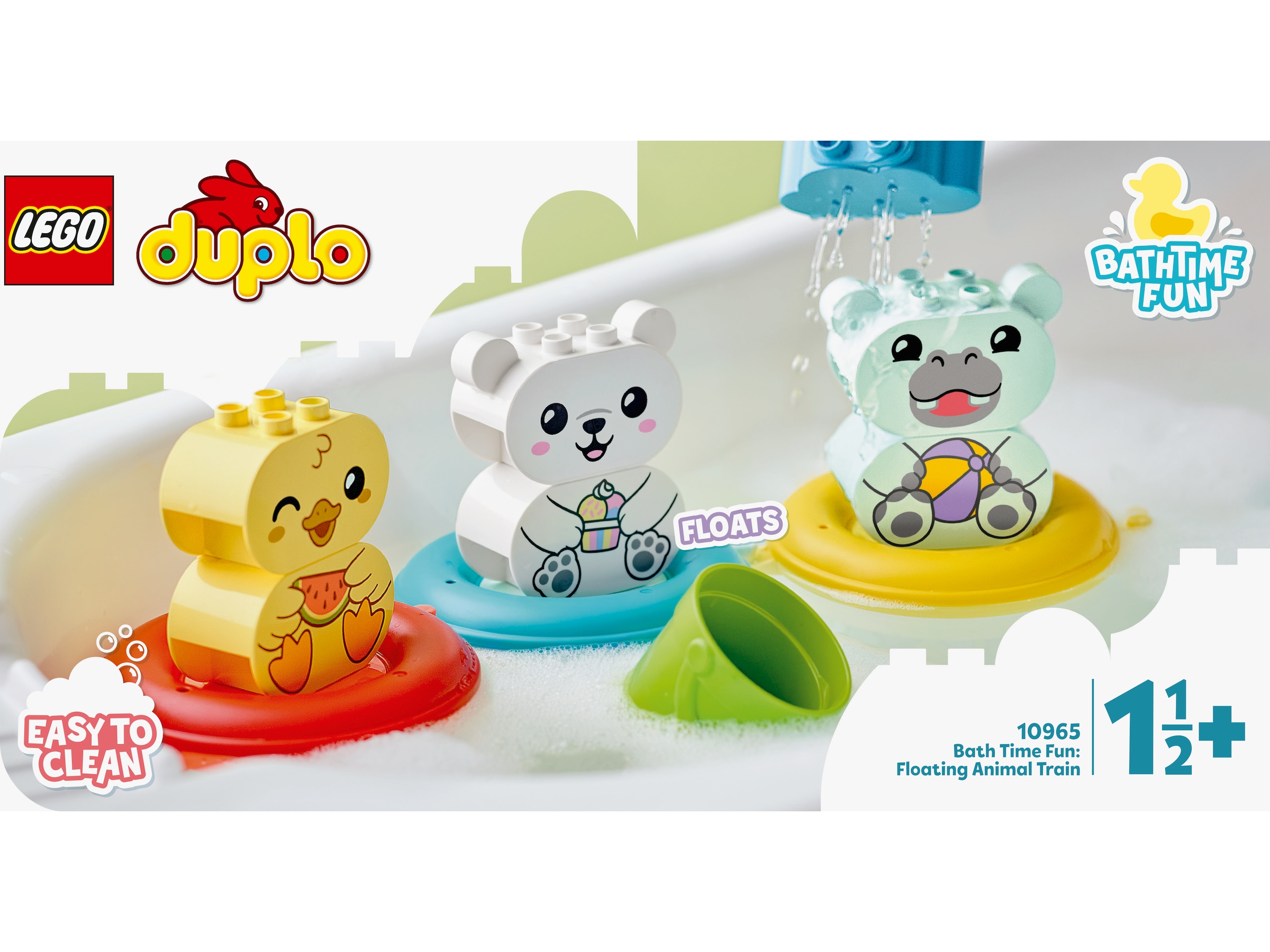 - Alsidigt badelegetøj – Det farverige LEGO® DUPLO® Mine første-sæt Sjov i badet: Flydende dyretog (10965) rummer endeløse muligheder for legende læring, bad efter bad