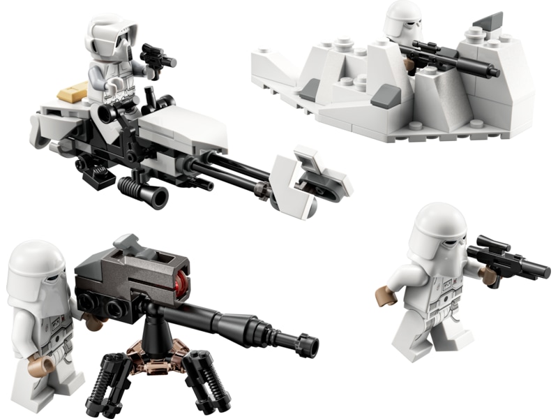 - Minimodeller – Sættet omfatter en kejserlig Hoth-speedercykel (der også kan kombineres med sættet AT-AT (75313)), knopskydende tung E-Web-repeterblaster og en sne-skyttegrav med ekstra ammunition