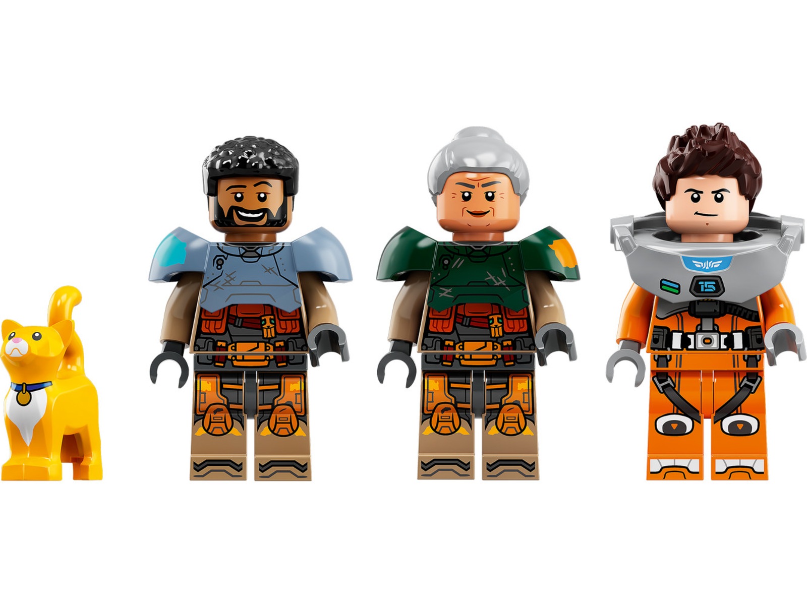 Lad fantasien flyve højt, når fans leger, at de rejser gennem rummet med Buzz Lightyear i sit rumskib på endnu en mission for at redde galaksen fra ondskaben. Til leg og udstilling Dette seje rumskib, der kan bygges, omfatter autentiske detaljer fra Disney og Pixars Lightyear, oprindelseshistorien om Buzz Lightyear, f.eks. et cockpit, der kan åbnes og har plads til minifiguren af LEGO® Buzz Lightyear, samt en aftagelig brændselscelle. Sættet indeholder 4 figurer fra filmen og 3 våben, bl.a. Darbys "Mr. Boom"-raketaffyrer, som fans kan bruge til at genskabe scener fra filmen. Der er også en stand med en informationsplade, så fans af filmen stolt kan udstille deres model på værelset.