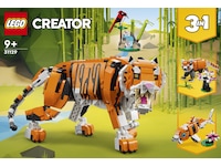 Sættet omfatter en klodsbygget tigermodel med bevægelig hale, ben, krop, skuldre, hoved og kæbe, og den kan også ændre ansigtsudtryk. LEGO legetøj sætter gang i medrivende og fantasifuld leg Børn kan få mindst 3 forskellige bygge- og legeoplevelser med dette fantastiske 3-i-1-legesæt. De kan bygge en bevægelig tiger med en rød fugl, ombygge den til en justerbar rød panda med bambus og et bonsaitræ, forvandle den til en koi-fisk med bevægelig hale og finner samt åkander, eller dykke ned i fantasien og skabe et andet dyr. En digital oplevelse for LEGO byggere Byggesættet omfatter interaktiv digital byggevejledning, der gør byggeoplevelsen endnu sjovere. Zoom- og drejeværktøjerne i den gratis app LEGO Byggevejledninger til smartphones og tablets hjælper børn med at visualisere modellen, mens de bygger.