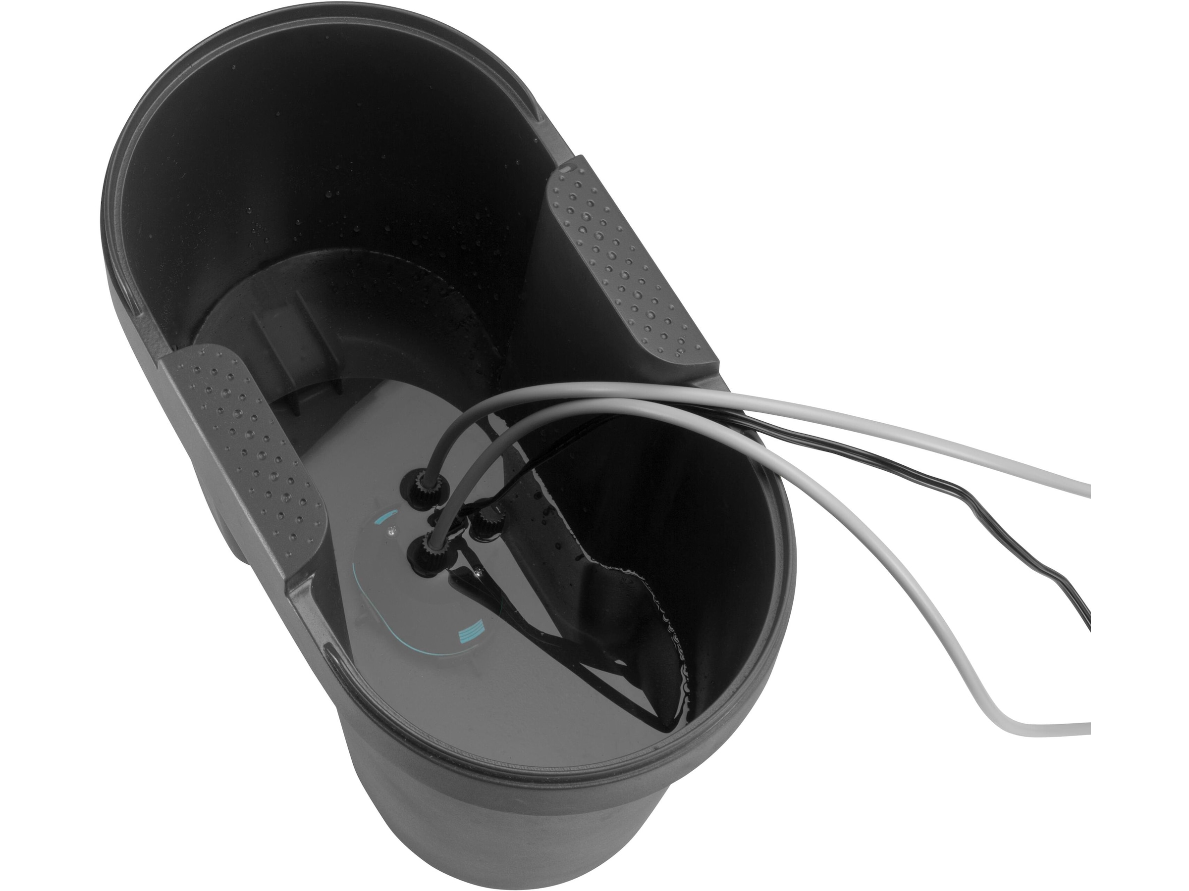 Vandbeholderen er lavet af op til 80 procent genbrugsmateriale og giver dig mulighed for opbevaring af komponenterne, når de ikke er i brug.