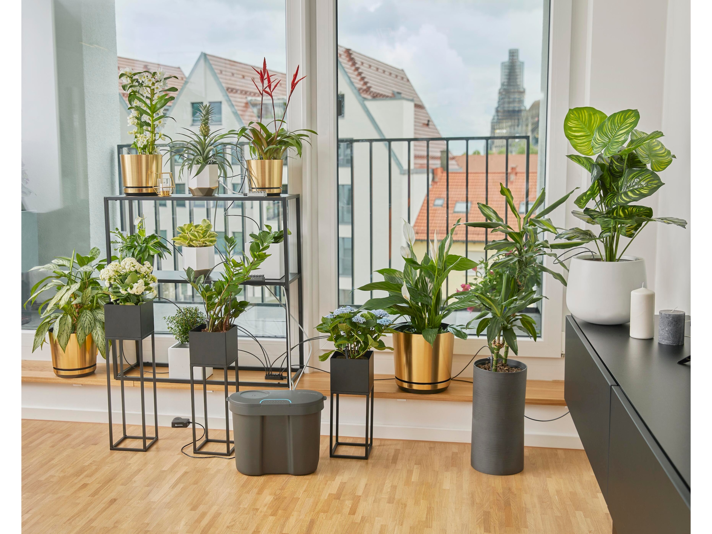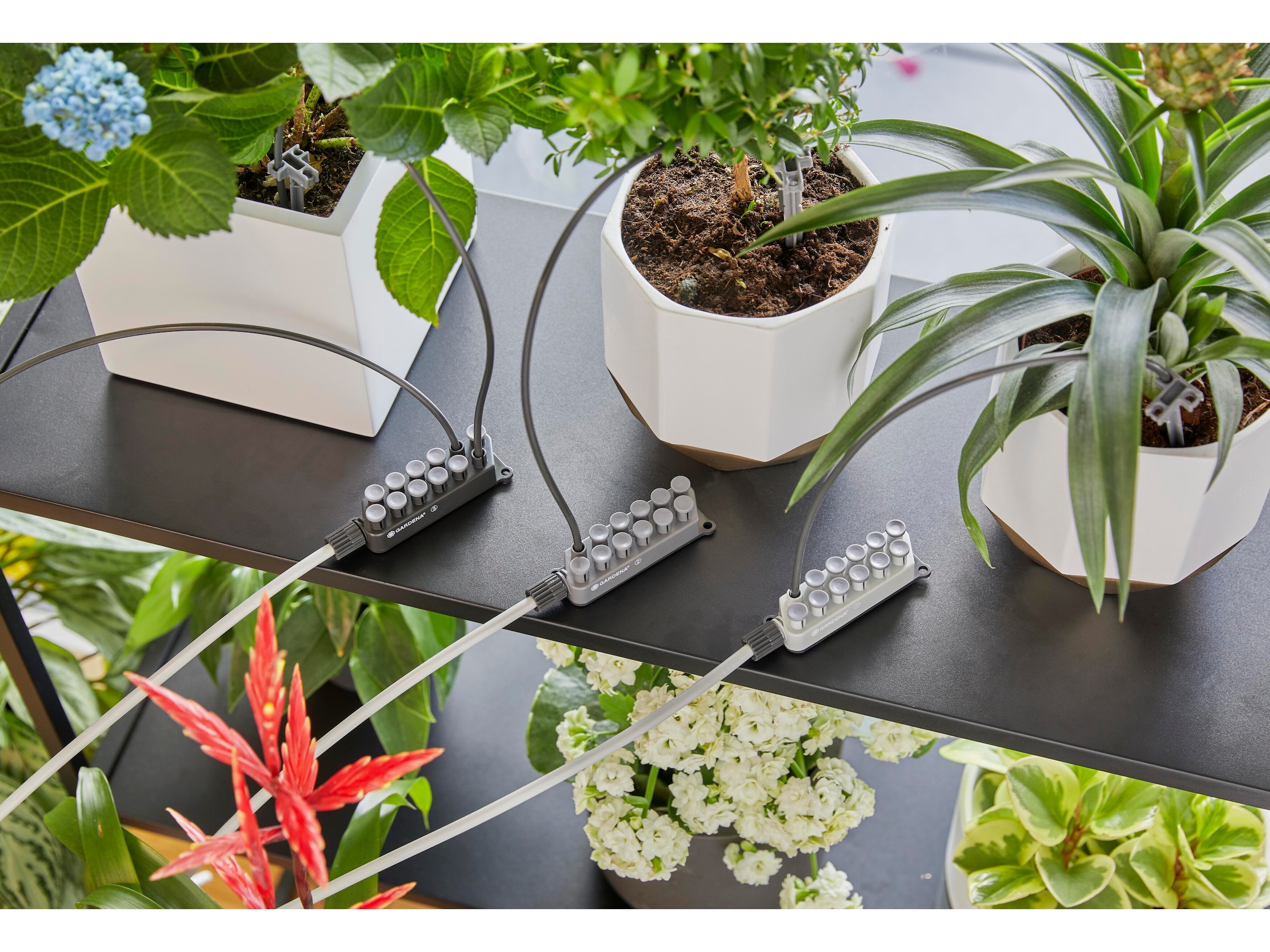Ferievandingssættet vander op til 36 indendørs planter automatisk i op til 1 minut om dagen og er ideelt at bruge til planter med forskellige vandingsbehov.