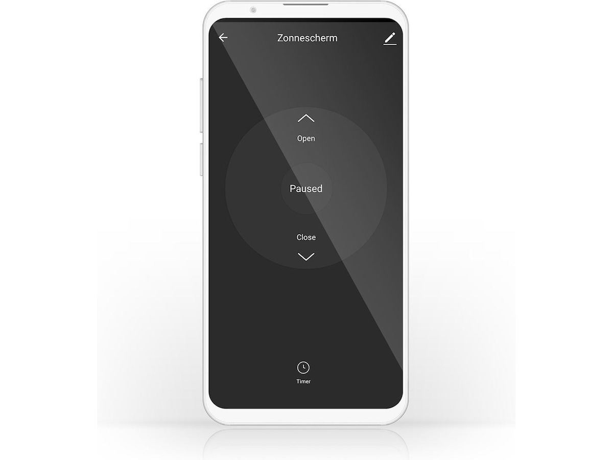 Åbn og luk de elektriske gardiner, persienner og skodder fra en smartphone, tablet eller stemmestyringsenhed i dit hjem, såsom Amazon Alexa eller Google Home.