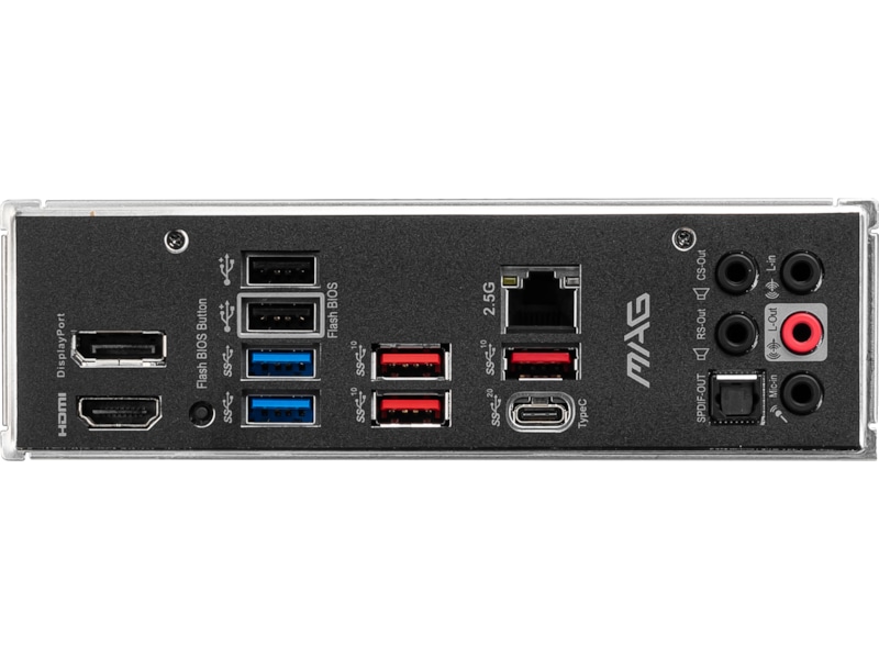 | Interface | 1 x audio linje-ud (centrum/subwoofer) - mini-jack, 2 x USB 2.0, 3 x USB 3.2 Gen 2, 1 x mikrofon - mini-jack, 1 x audio linje-ud - mini-jack, 1 x LAN (2.5Gigabit Ethernet), 1 x TOSLINK, 1 x DisplayPort, 2 x USB 3.2 Gen 1, 1 x audio linje-ind - mini-jack, 1 x USB-C Gen2x2, 1 x HDMI, 1 x audio linje-ud (bagtil) - mini-jack |