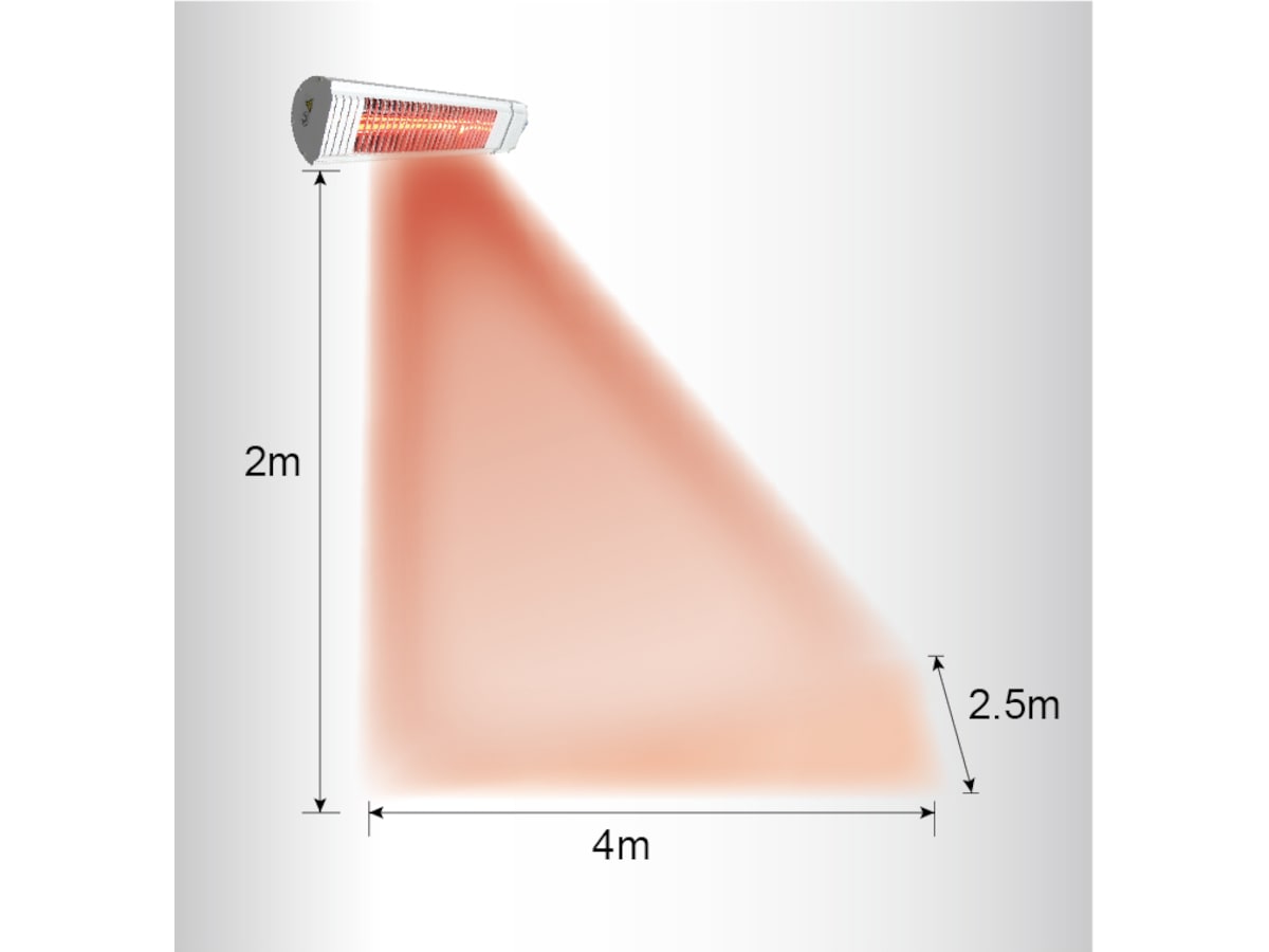 Dette er en infrarød terrassevarmer på 2000Wmed den revolutionerende nye Ultra Low Glare Plus varmeteknologi. ULG + teknologi reducerer rødt lys med bemærkelsesværdige 99%, så du kan nyde varmen i et mere behageligt og blødt lys. Anbefalet af det førende tek-magasin tek.no.