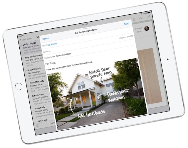 Med Apple Pencil kan du hurtigt skrive og tegne direkte i mails, tilføje noter i dokumenter og fremhæve og markere hvad som helst på din iPad.