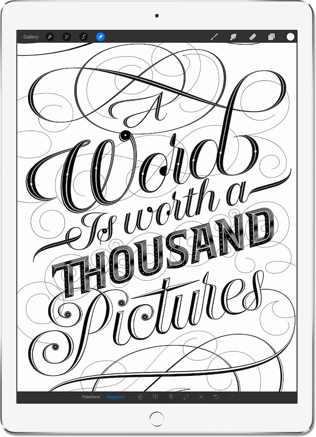Oplev den storslåede alsidighed med applikationer som udnytter Apple Pencil fuldt ud. Gå på opdagelse i App-store, hvor du kan finde apps, som lader dig udtrykke din kreativitet til fulde.