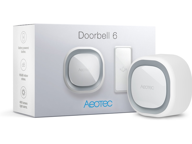 I hjertet af Doorbell 6 er dens klokke. I stand til at forbinde op til 3 separate knapper/dørklokker med dit Z-Wave-system, vil den sørge for, at den, der er hjemme, er klar over, at der er nogen ved døren gennem dens kombination af lyd- og visuelle alarmer.