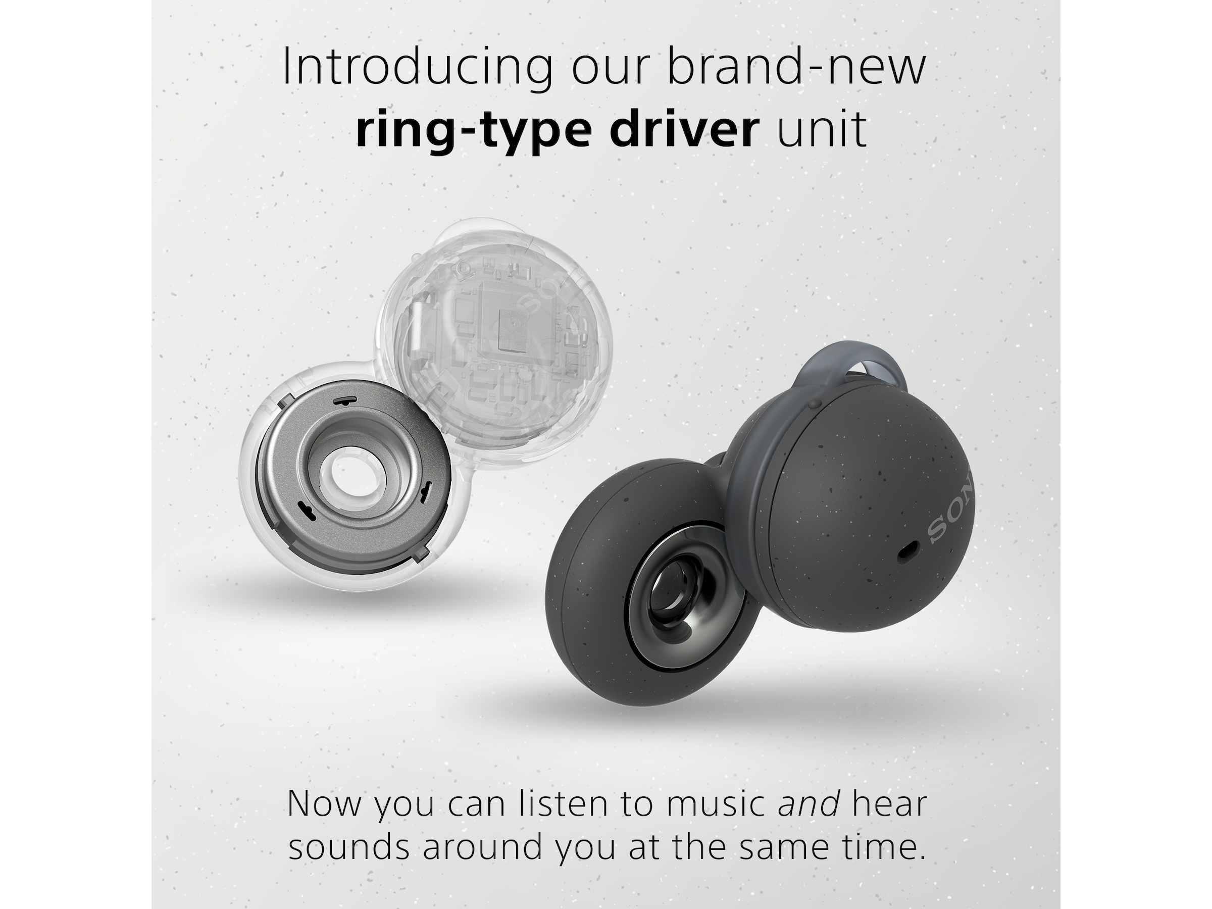 Så hvordan virker det unikke design? Den nyudviklede ring-formede driverenhed gør det muligt at opnå audiotransparens. Det betyder, at du kan høre, når nogen kalder på dig under et opkald og at du kan snakke med dine venner, mens du lytter til musik med dine Bluetooth® høretelefoner.