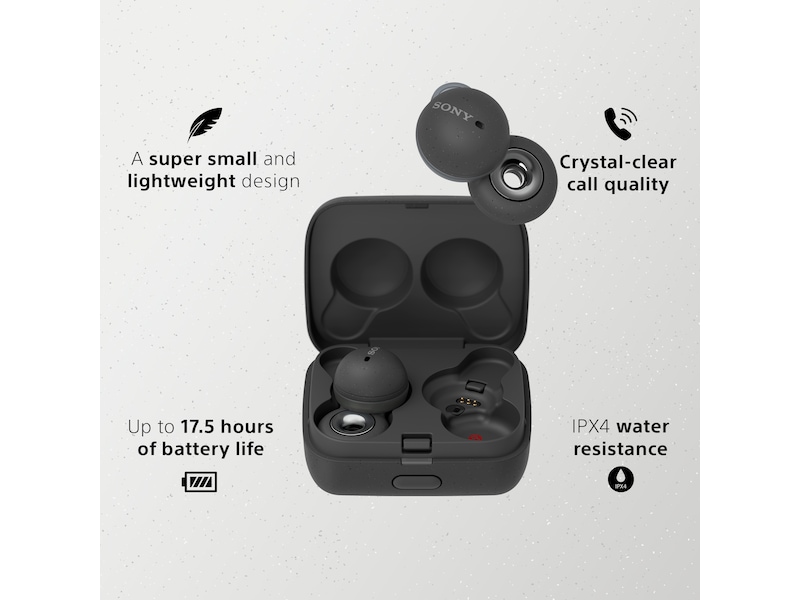 LinkBuds kommer med et utal af ’smart listening’ funktioner så som Adaptive Sound Control og Wide Tap Area. Det giver bedre playback kontrol og gør LinkBuds super nemme at bruge. De er ligeledes vandafvisende på IPX4 niveau, har op til 17,5 timers batteritid og hurtig opladning, så du aldrig behøver at slukke for dine høretelefoner.