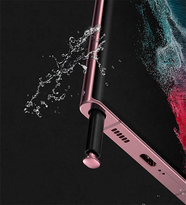 Rammen i poleret Armor Aluminium fungerer som en beskyttende rustning, mens for- og bagsiden er udstyret med robust Corning® Gorilla® Glass Victus®+. Desuden er både Galaxy Ultra S22 og S Pen IP68-klassificeret