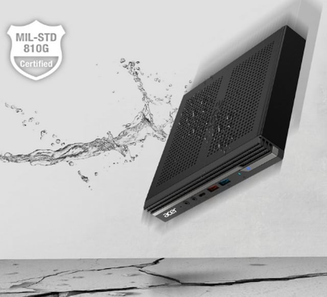 Den robuste Veriton N er bygget til at overholde MIL-STD 810G, 810F. Disse standarder indebærer strengt definerede procedurer. Faldtesten involverer 26 fald fra en højde af ca. 122 cm, hvor forskellige dele af kabinettet rammer en 5 cm tyk krydsfinerplade placeret på beton. Andre prøver bekræfter minicomputerens modstandsdygtighed over for regn, fugtighed og ekstreme temperaturer.