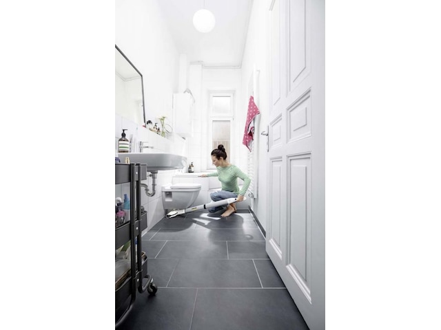 Når den tørres af, opnår gulvvasken 20 procent* højere renlighed end en moppe og er meget mere bekvem