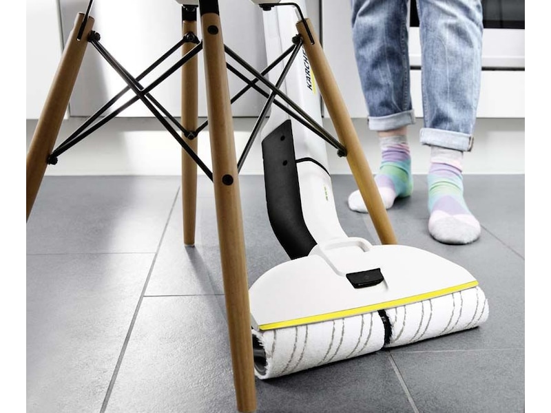 Takket være sin slanke form kan EWM 2 ikke kun nemt nå under møbler, men sparer også opbevaringsplads. Den har også et drejeled til nem rengøring af hjørner og kanter.
