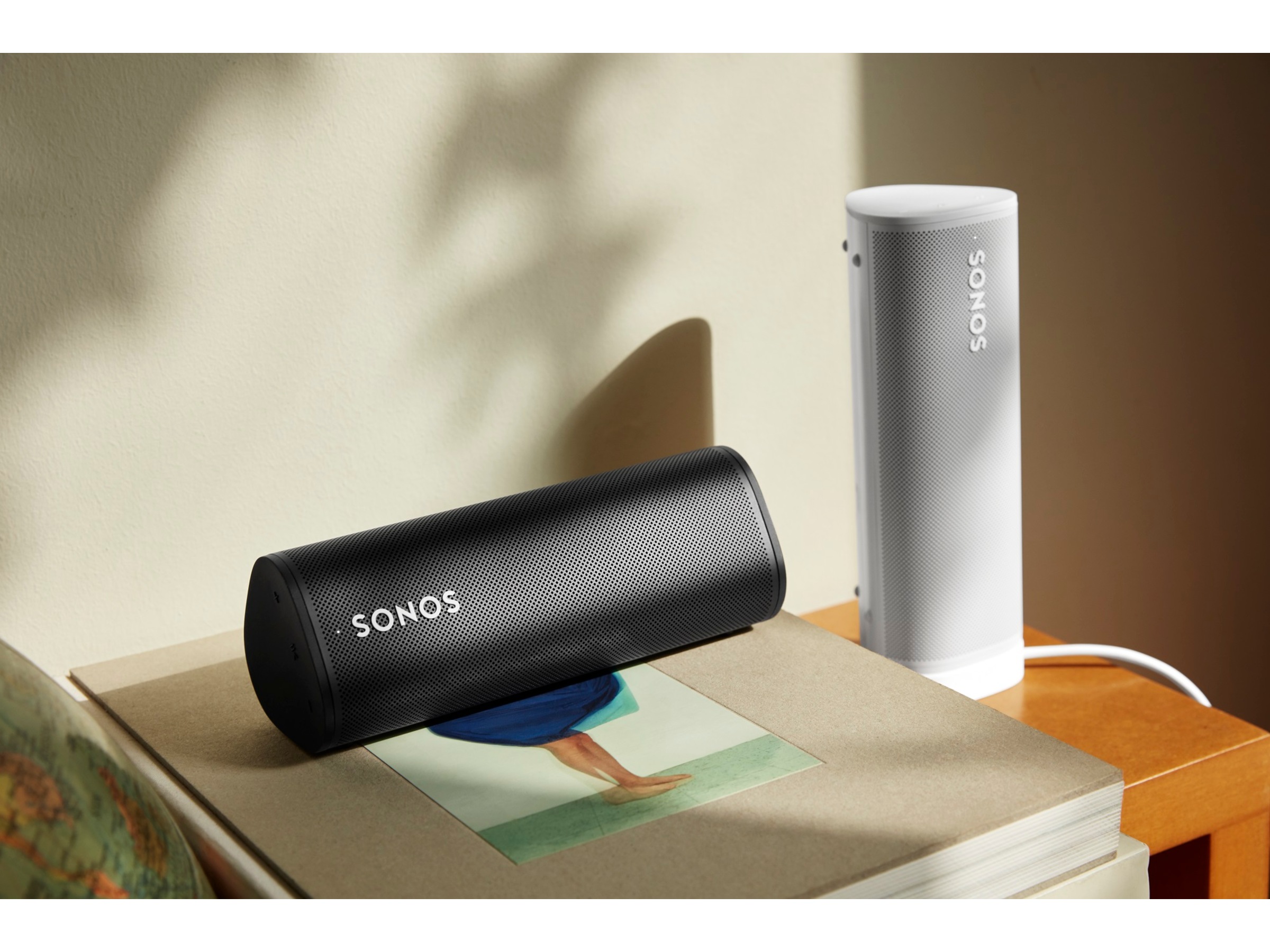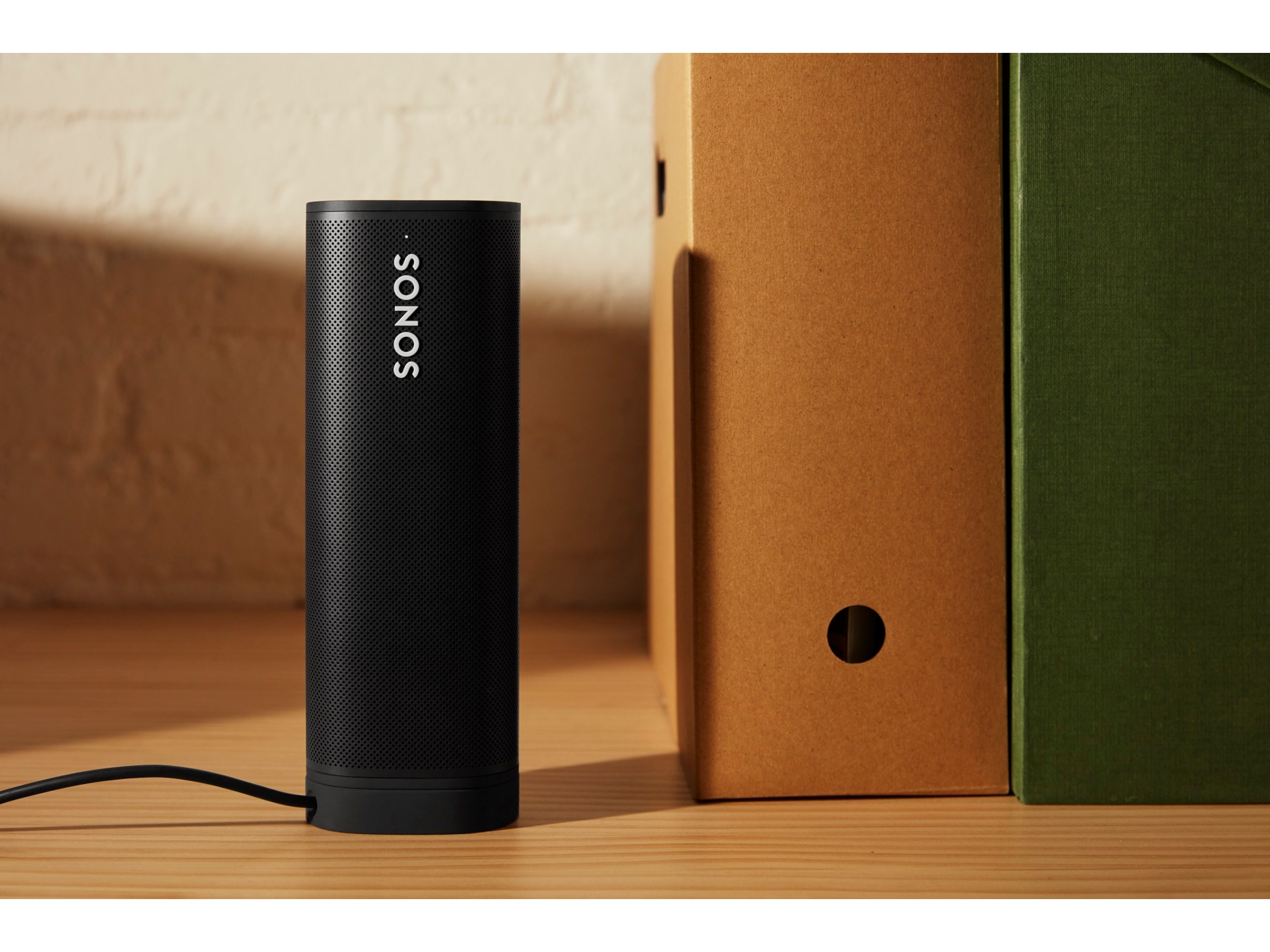 - Få op til 10 timers uafbrudt afspilning, og oplad nemt Roam SL med enhver trådløs Qi-oplader, den tilpassede Sonos Roam SL