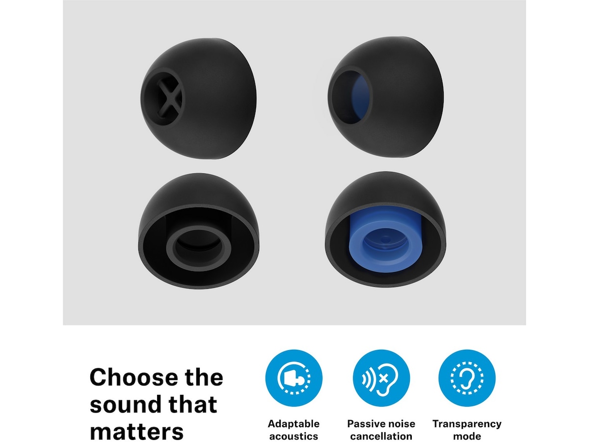 • Adaptable Acoustics: Åbne og lukkede øreadaptere til situationsopmærksomhed og passiv støjreduktion