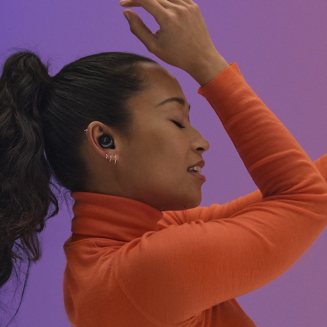 • Kompakt, ergonomisk design med øreadaptere og ørefinner i forskellige størrelser sikrer optimal komfort og perfekt pasform til alle.