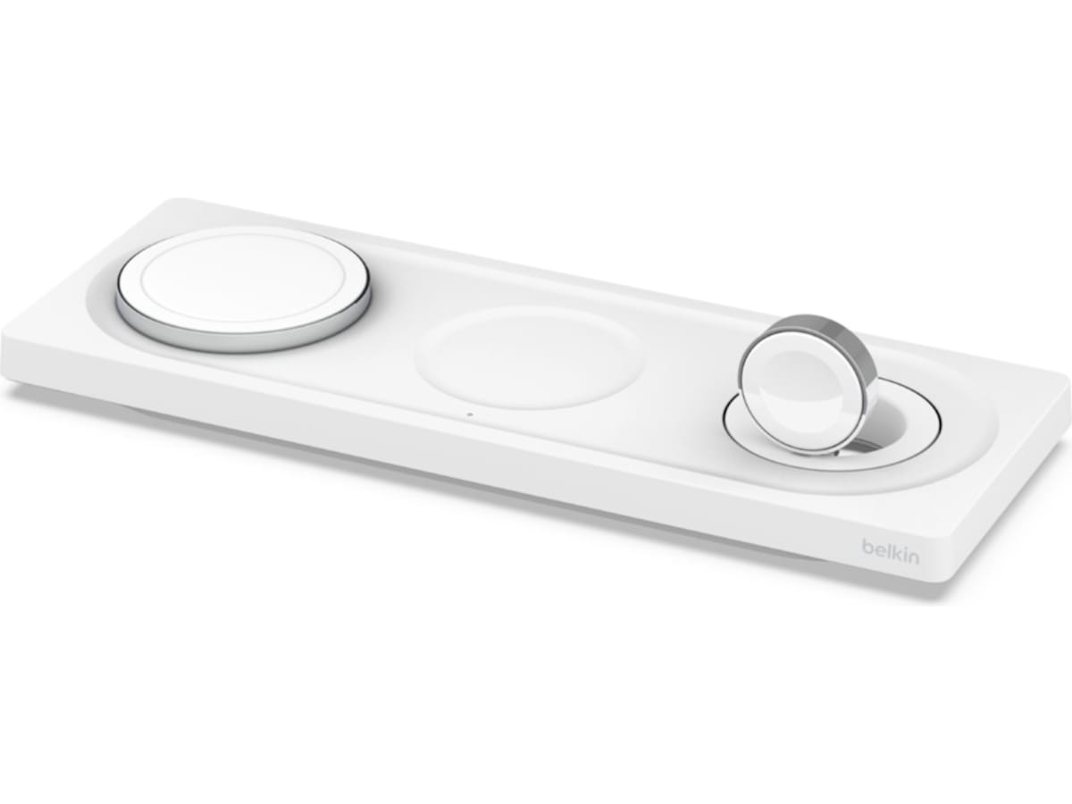 Elegant og kraftig oplader til telefon og tilbehør. Har Magsafe-understøttelse til iPhone, så telefonen automatisk tilpasser sig den bedst mulige placering. Har også en smart LED-indikator, der indikerer, at dine AirPods er placeret korrekt på opladeren. Muliggør opladning af Apple Watch i både liggende og stående tilstand. Understøttelse af hurtig opladning af Apple Watch Series 7, som giver hele 33 % hurtigere opladning. Udgangseffekt på op til 15 W.