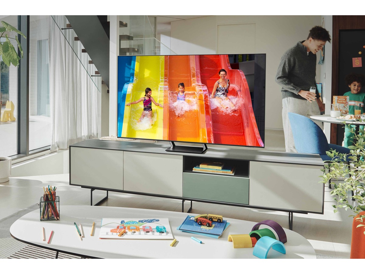 Quantum Dot-teknologien giver dig vores bedste billedkvalitet. Med 100% farvevolumen forvandler Quantum Dot lys til imponerende farver, der bevarer deres glans uanset lysstyrke.