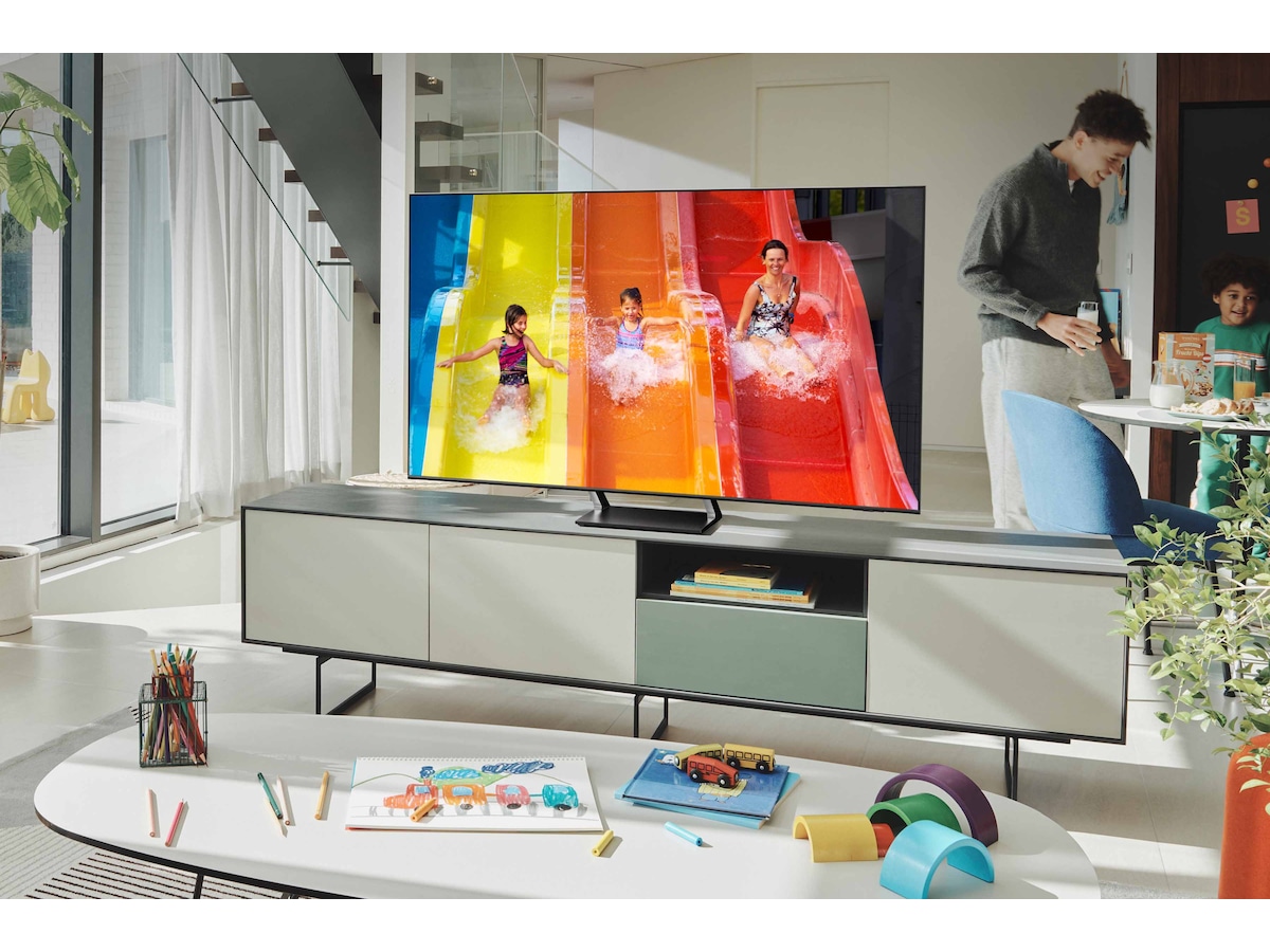 Tag TV-oplevelsen til helt nye højder. Teknologien tilpasser billedet til omgivelserne, så du altid får et billede med klare og naturlige farver – selv på lyse sommeraftener. Uanset om du vil se film eller spille, giver Neo QLED dig en billedkvalitet på et helt nyt niveau.