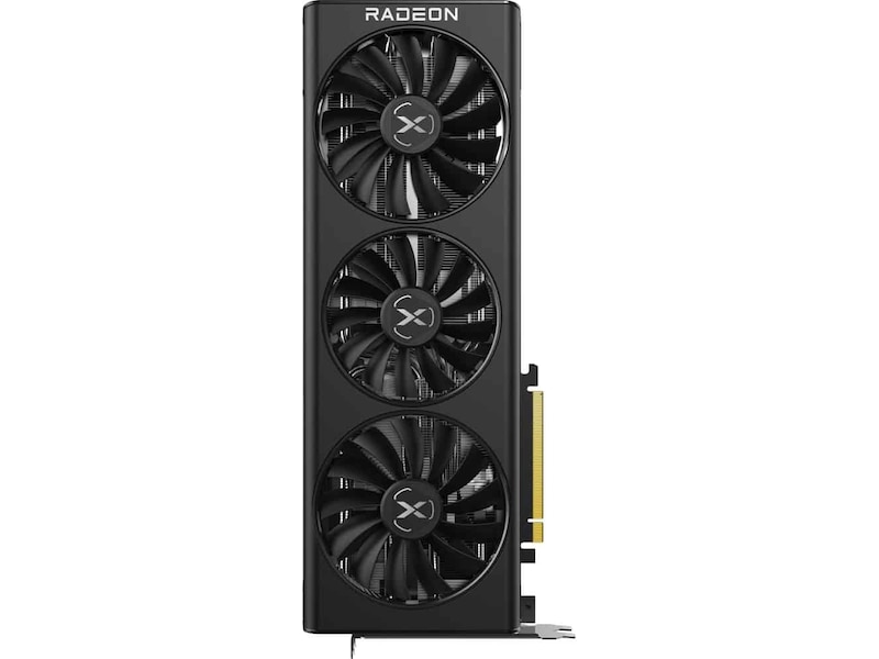 XFX's helt nye Ghost Thermal-design køler din GPU bedre end nogensinde før. Vores nye design har en direkte luftstrømsventilation, der forbedrer kølingen markant og komplimenterer det åbne design af Ghost Thermals flydende svøb. Vores nye blæsere med 13 blade øger den samlede luftstrøm og giver langvarig stille drift.