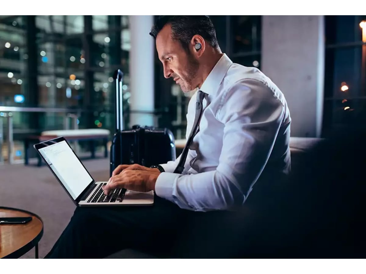 Med fuldt opladede ørepropper og et fuldt opladet etui kan du tage afsted med over en dags afspilningstid i lommen. Derudover stopper musikken midlertidigt, hvis du fjerner en øreprop, så du aldrig går glip af en eneste tone. Det Qi-kompatible etui kan oplades trådløst eller via USB-C.