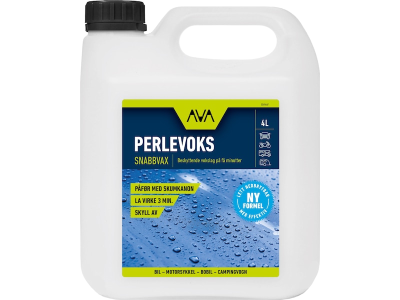AVA perlevoks er et meget effektivt, vandopløseligt middel, der beskytter lakken og giver en blank overflade indtil næste gang du vasker din bil, motorcykel, autocamper eller campingvogn.