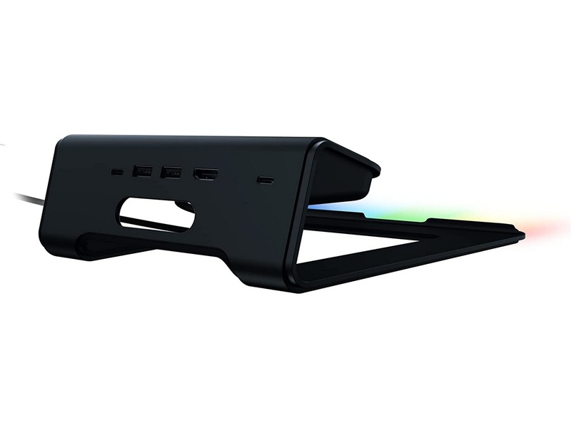 | Egenskaber | Gennemløbsopladning, Razer Chroma-understøttet, 18° stigning, Arm til to monitorer, Chroma RGB underbelysning, Aluminiums afslutning |