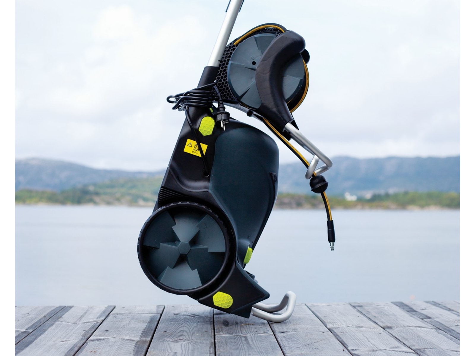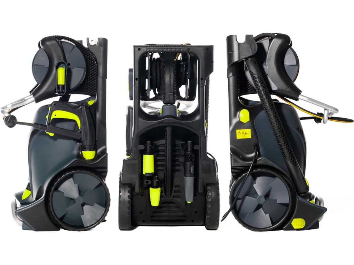 Højtryksrenseren har et meget lavt tyngdepunkt og lav placeret udtræk af slangen. Dette kombineret med en bred underside og udtrækkelig frontstøtte gør maskinen super-stabil.