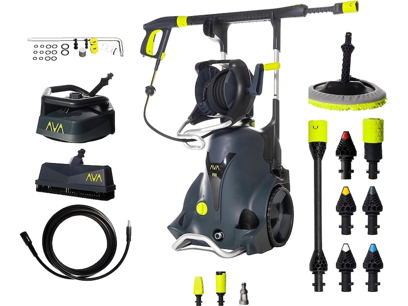 AVA højtrykspistol er inspireret af professionelt udstyr. Evnen til at montere en række af dyser direkte i pistolen gør det nemt at arbejde i begrænsede områder, hvor brugen af lange lanser ville være upraktisk. Håndtaget er designet til at give god ergonomi og greb til hænder i alle størrelser. Det ovale hul på pistolens bagside kan anvendes til at fastgøre reb eller karabinhager for sikring af udstyret. Dette er nyttigt, når du arbejder på stiger, stilladser eller lignende.