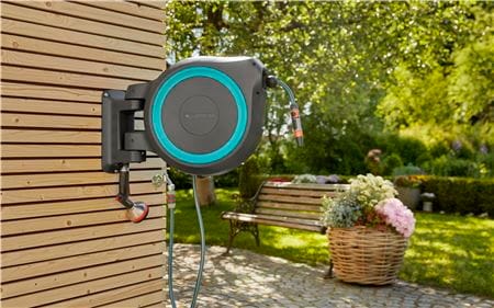 Vanding, der altid er klar til konkurrence: Med den væghængte slangeboks RollUp M/L bliver det en fornøjelse at vande haven.